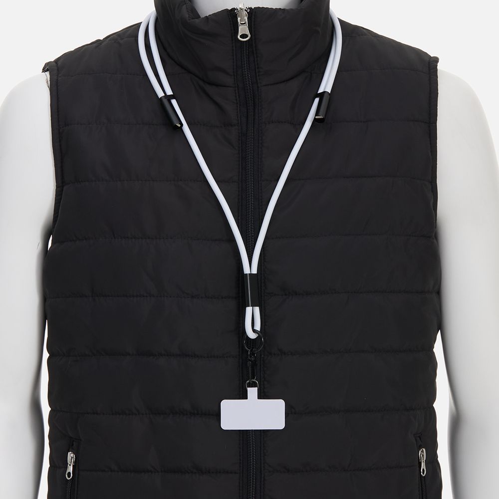 Важно: если ланьярд распускается под тяжестью смартфона — просто убедитесь, что среднее из трёх колец фурнитуры находится по центру ланьярда (на шее под затылком), а не сбоку. Соседние ветви оплётки должны идти вместе, без зазоров, так достигается трение ткани о ткань.