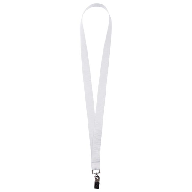 Бейдж крепится к ленте с помощью металлической клипсы.