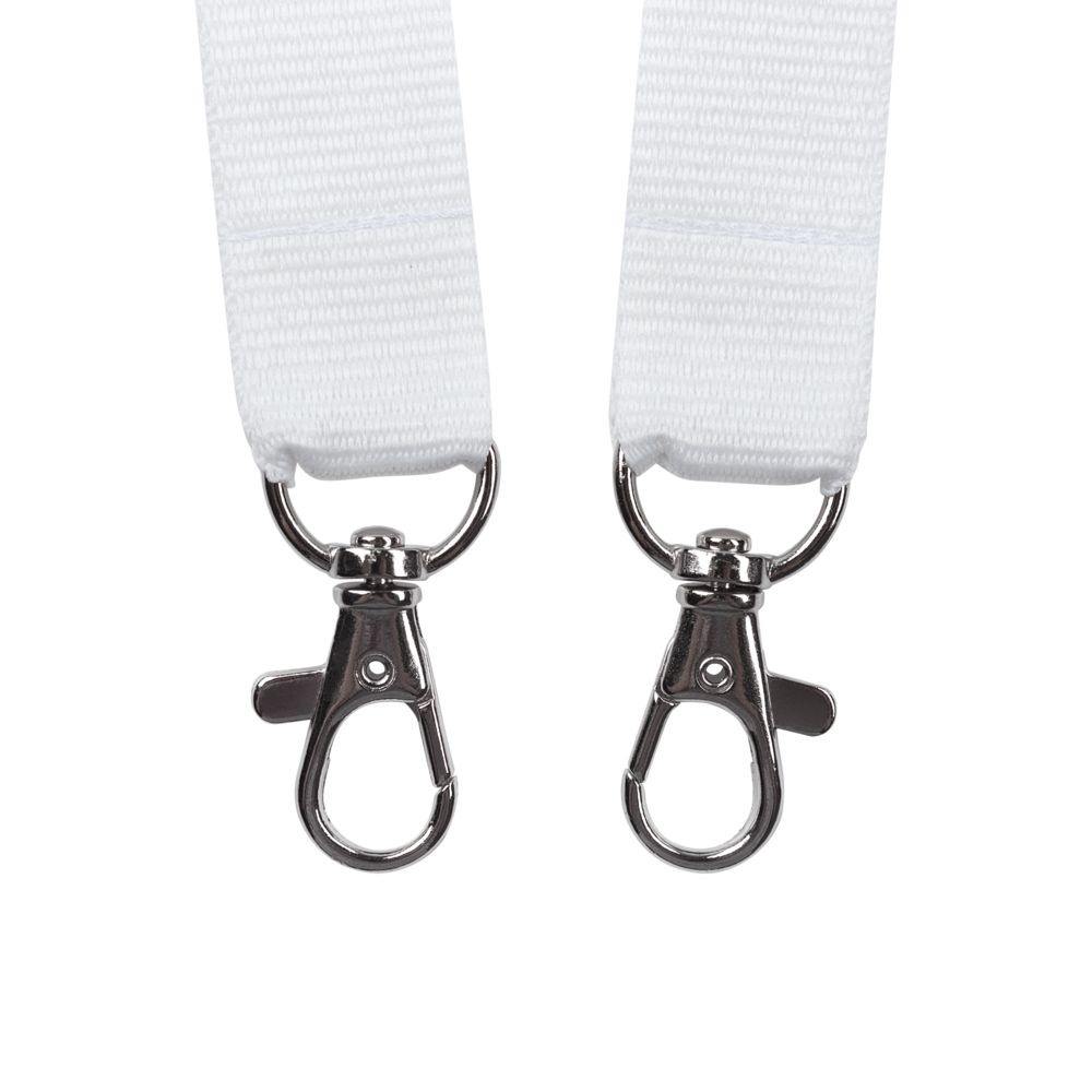 Для крепления бейджа на ленте имеются два металлических карабина-люкс. Такое двойное крепление не позволяет бейджу перекручиваться — и собеседнику всегда видно имя говорящего.