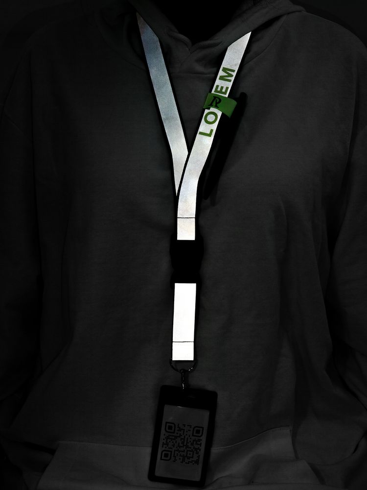 Лента для бейджа или пропуска с карабином и межъярусным замком. Такой замок позволит быстро отстегнуть часть ленты, чтобы приложить интерактивный бейдж или пропуск к считывателю, не снимая ленту через голову.