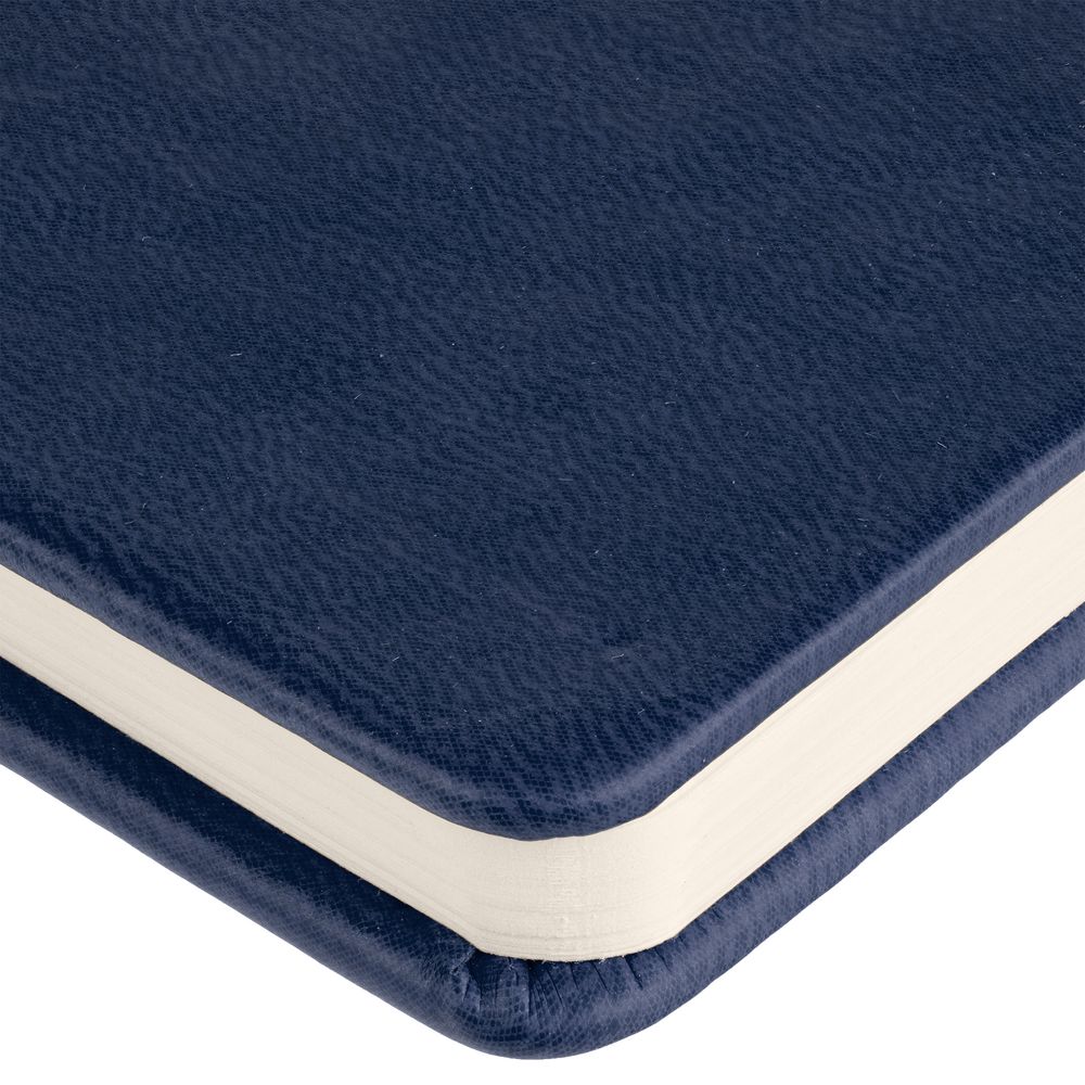 Твердая обложка из материала Latte, синий, ляссе в цвет обложки.