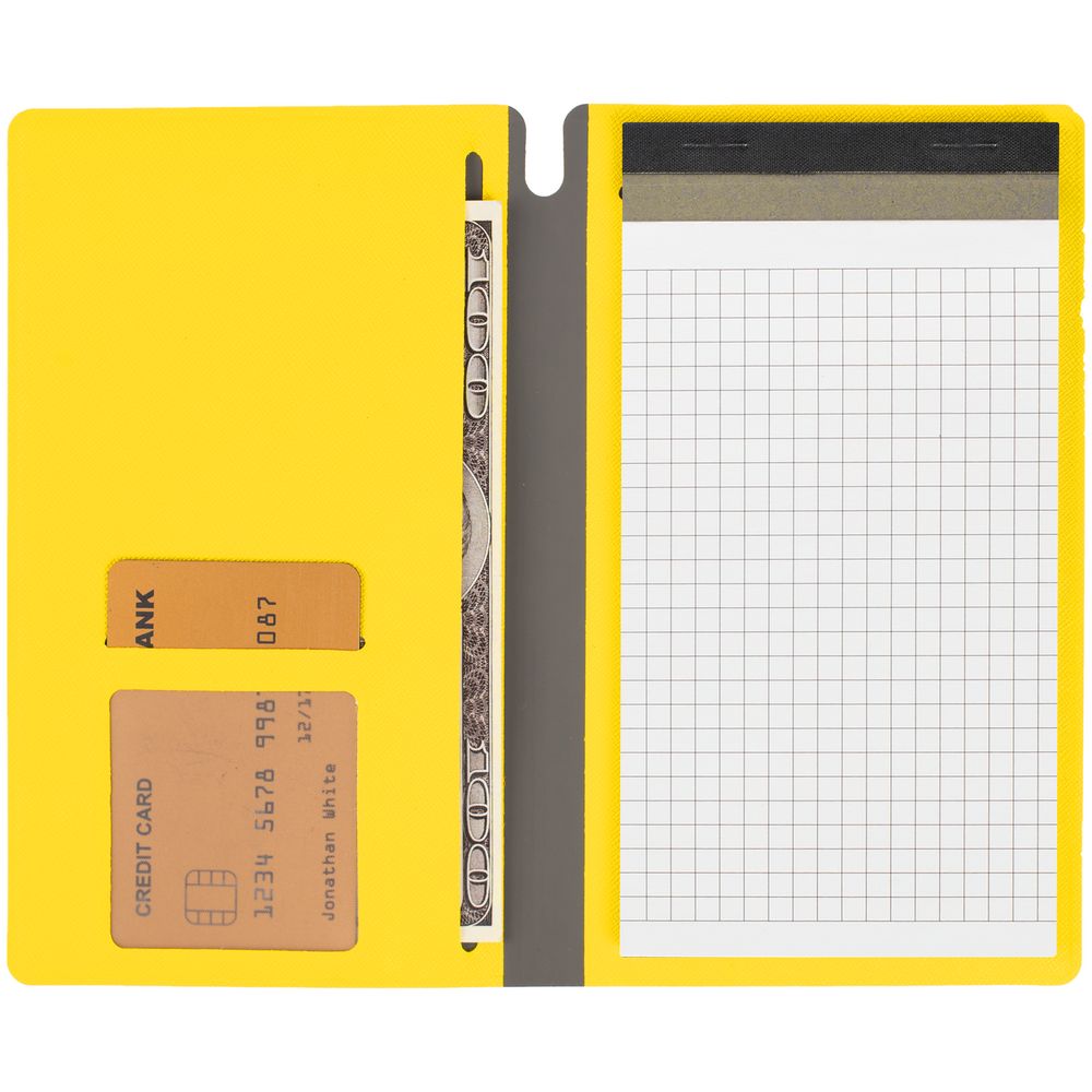 Съемная обложка с карманом для документов, отделением для пластиковой карты и местом для ручки.
