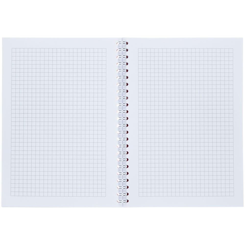 Блокнот формата А5 в клетку на пружине с цветной обложкой.Обложка из картона Fabric Embossing Linear красного цвета плотностью 300 г/м². Блок из белой бумаги плотностью 70 г/м², 50 листов.