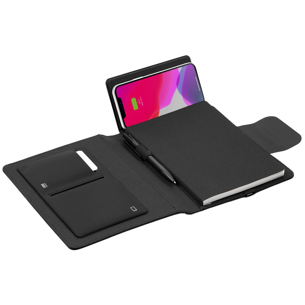 Органайзер с блокнотом и аккумулятором с беспроводной зарядкой.