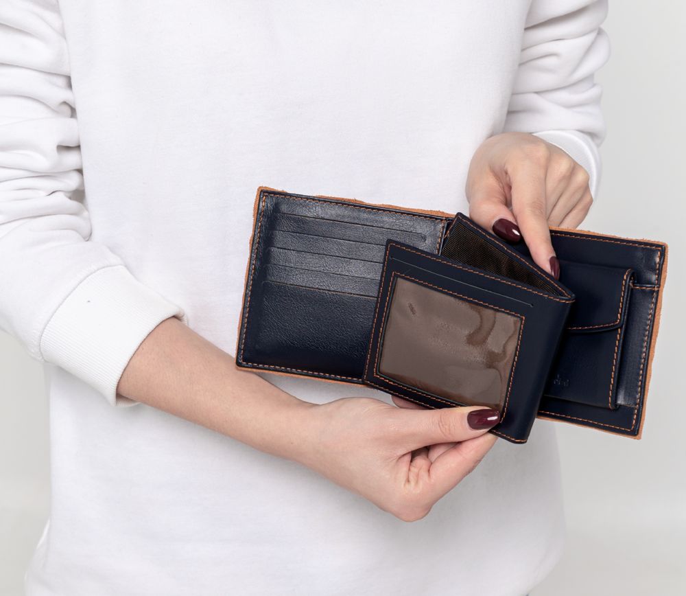 Двойное отделение для банкнот, карман для монет, съемное отделение для пластиковых карт, водительского удостоверения и пропуска.