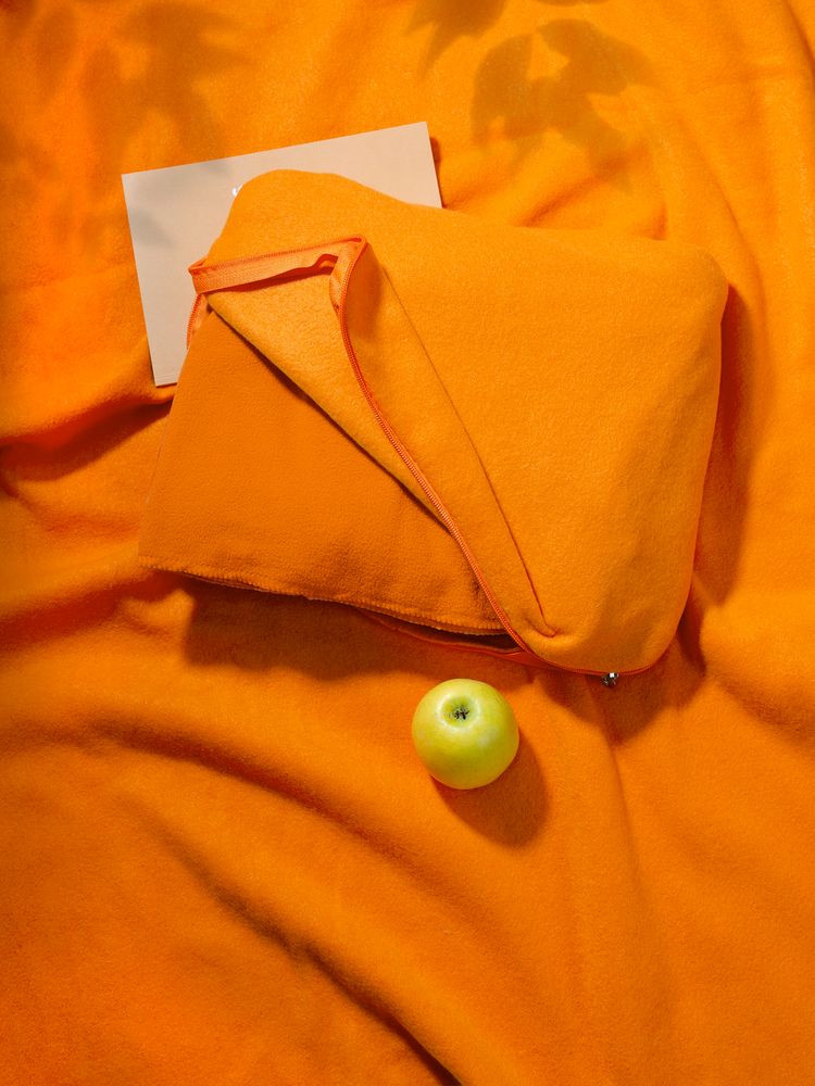 Флисовый плед с чехлом на молнии. Если сложить плед в чехол, получается подушка.