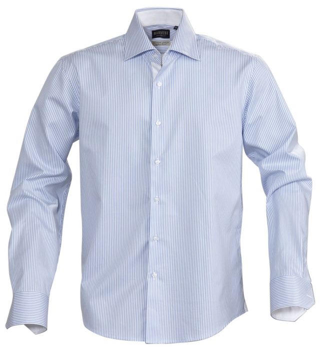 Мужская сорочка современного приталенного кроя из гребенного хлопка качества Easy Care (легко утюжить). Классический узор в полоску с контрастной отделкой оборотной части воротника, изнанки манжет и планки пуговиц. Упрочненные швы воротника и манжет.