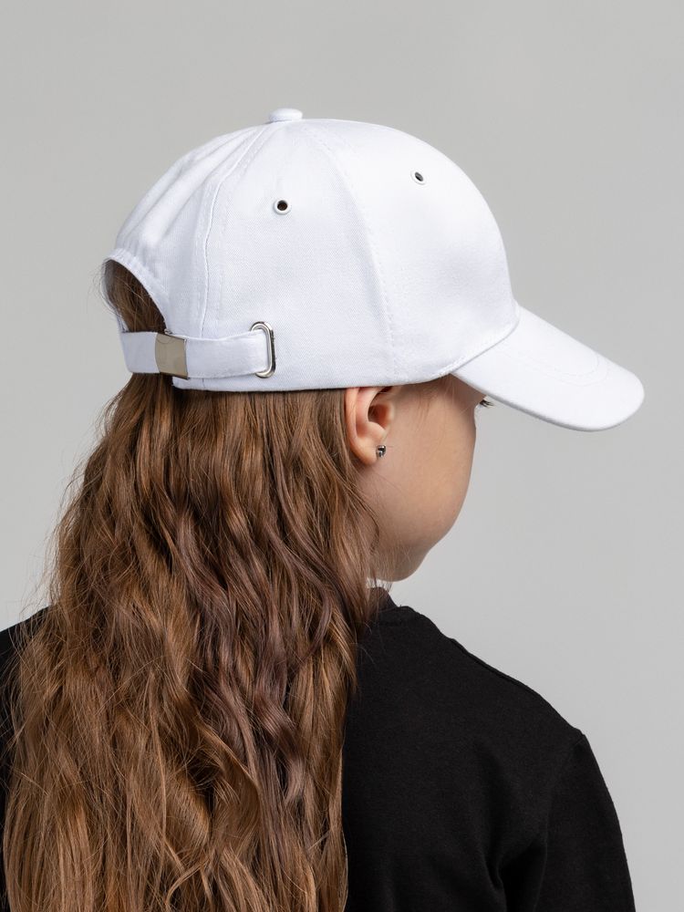 Детская модель с шестью клиньями без шва на лбу. Металлические люверсы покрашены в тон изделия. Сзади металлическая застежка для регулировки размера.