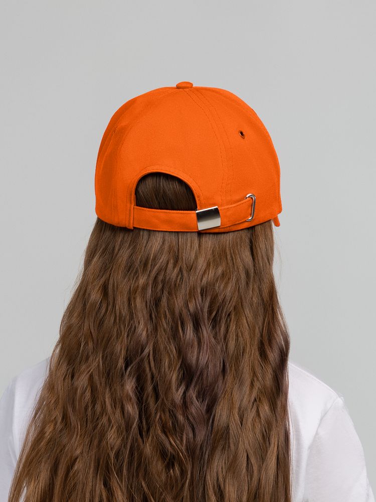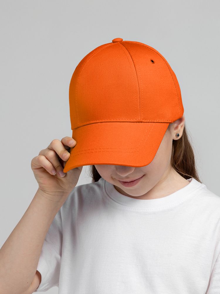 Детская модель с шестью клиньями без шва на лбу. Металлические люверсы покрашены в тон изделия. Сзади металлическая застежка для регулировки размера.