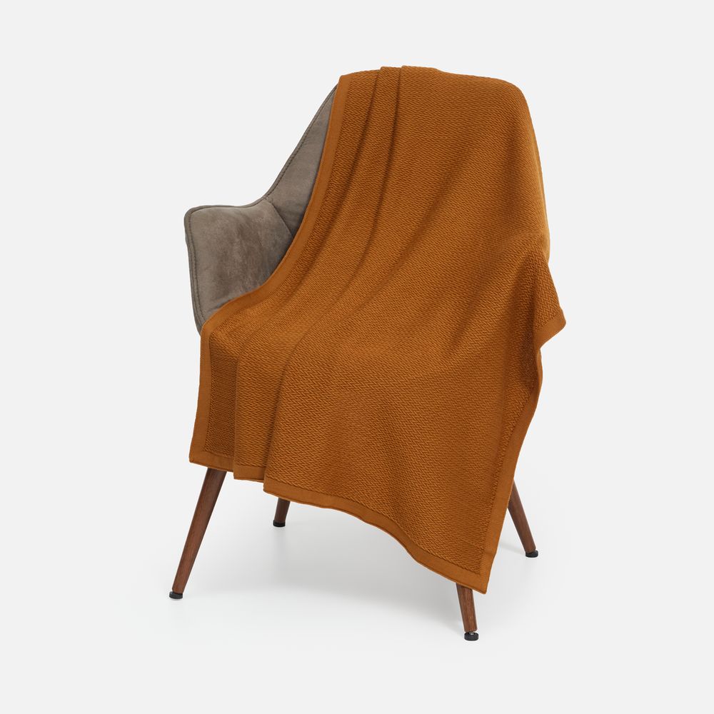 Плед из полушерстяной пряжи, поэтому прекрасно согревает и неприхотлив в уходе.