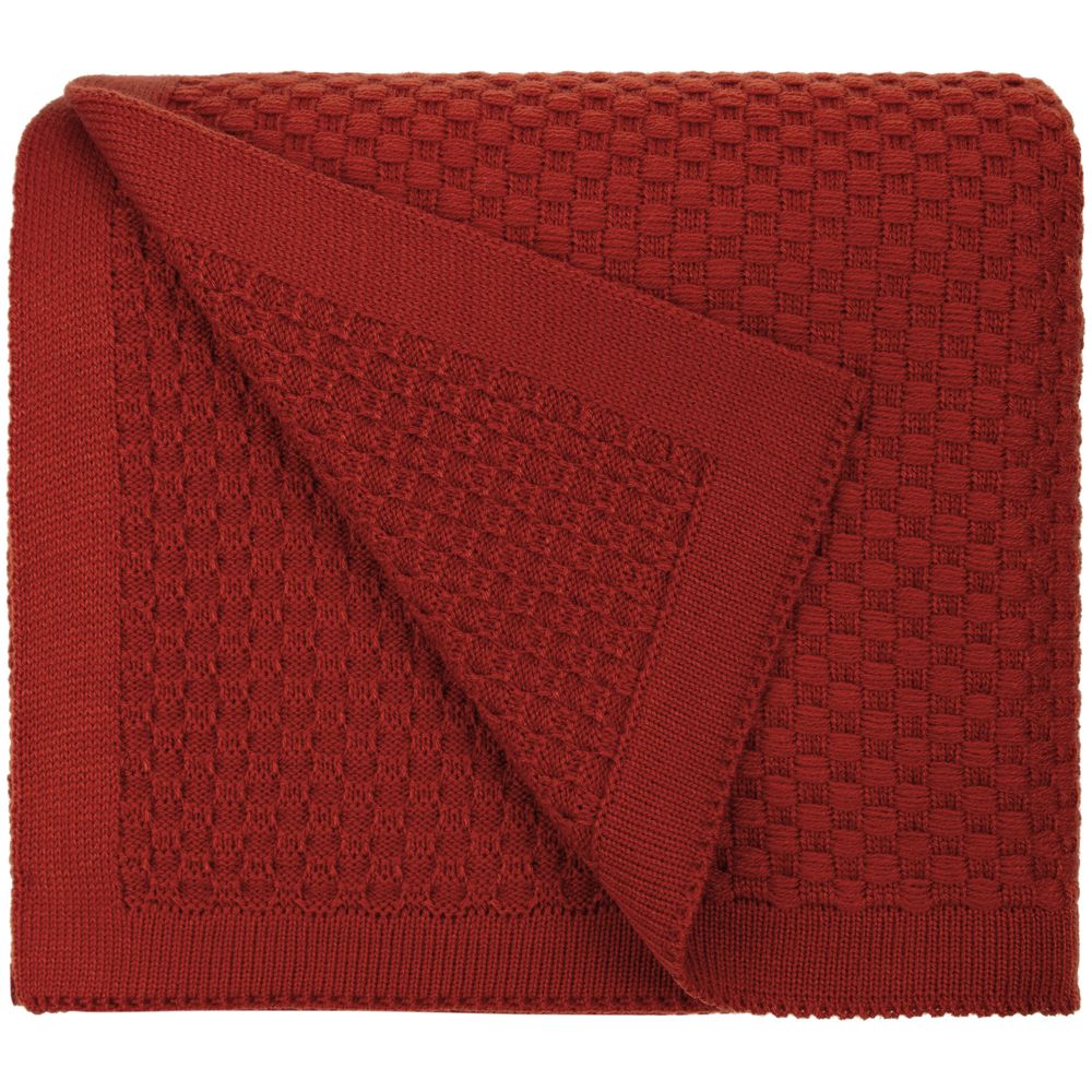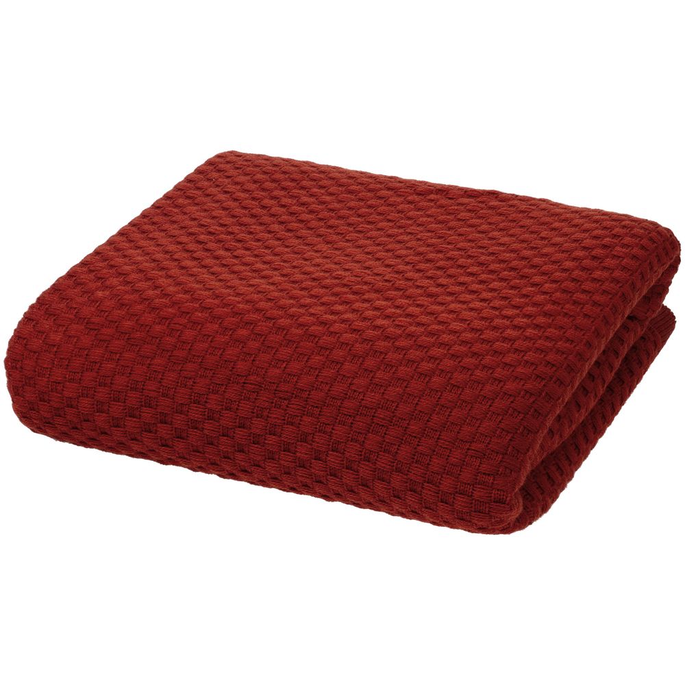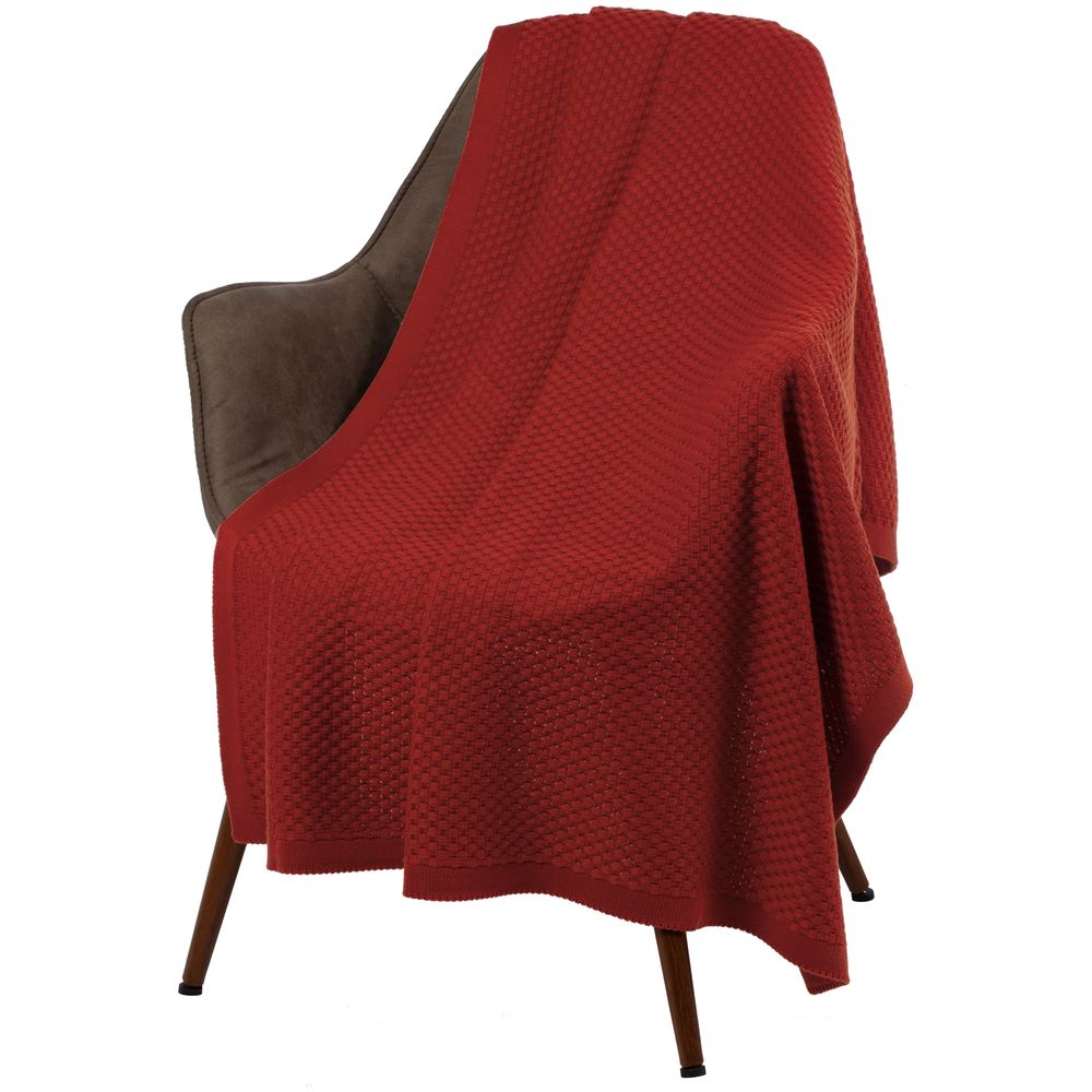 Однотонный плед рельефной вязки.