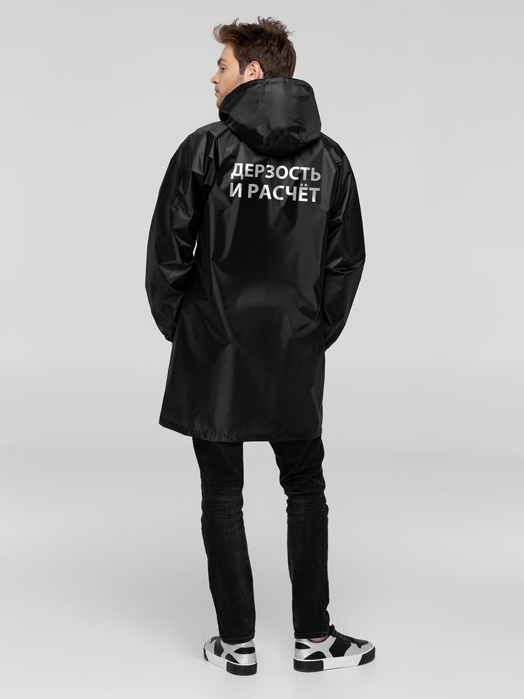 Черный плащ только для супергероев! Классический плащ-дождевик с фразой из песни одноименного персонажа поможет не только выразить победоносную практичность и отважный нрав, но и защитит надежно от дождя.