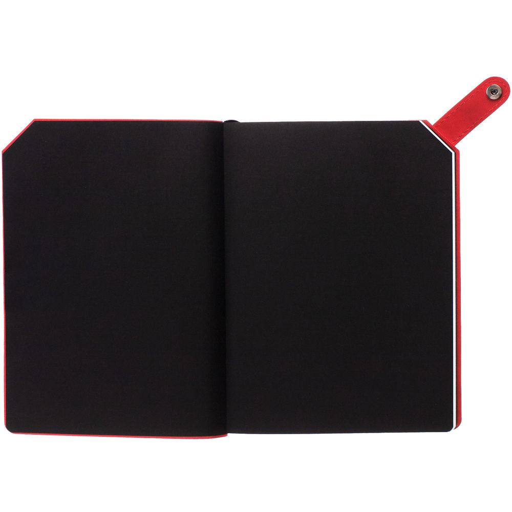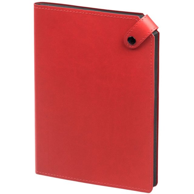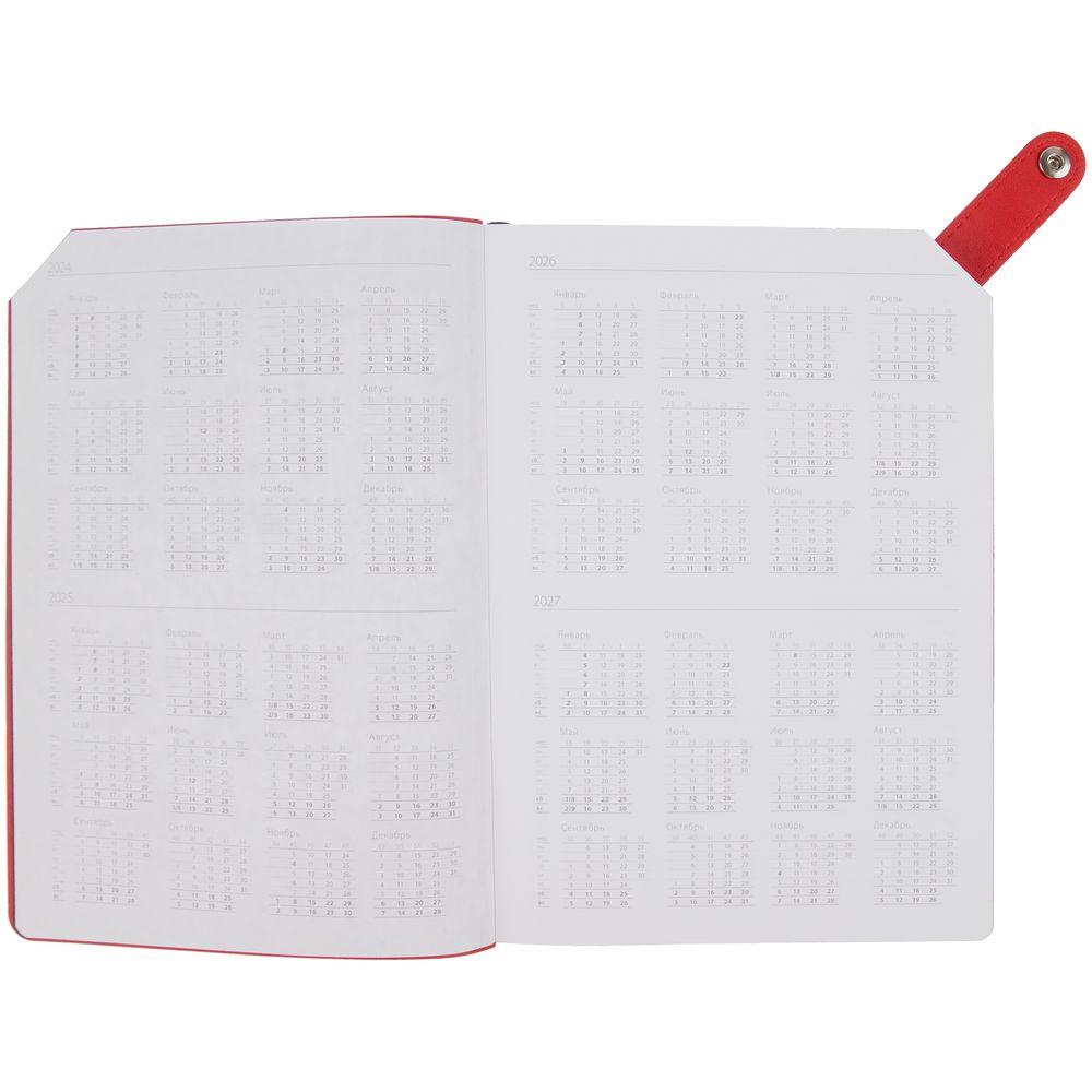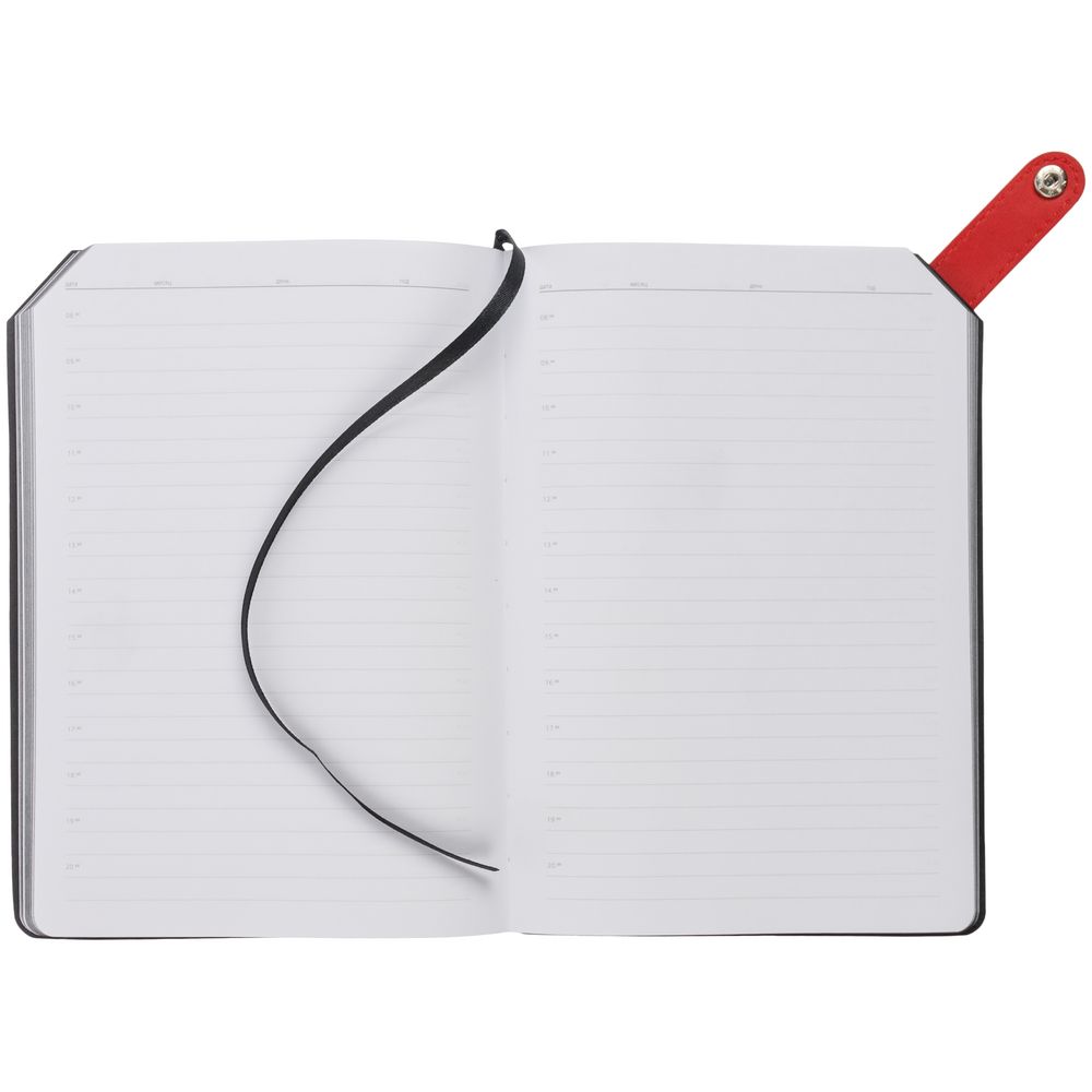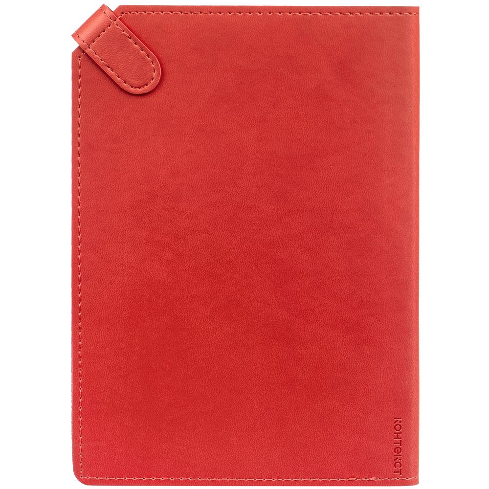 Ежедневник с гибкой обложкой и тонированным обрезом. Выполнен из материала Latte, красный РР, дополнен черным ляссе.