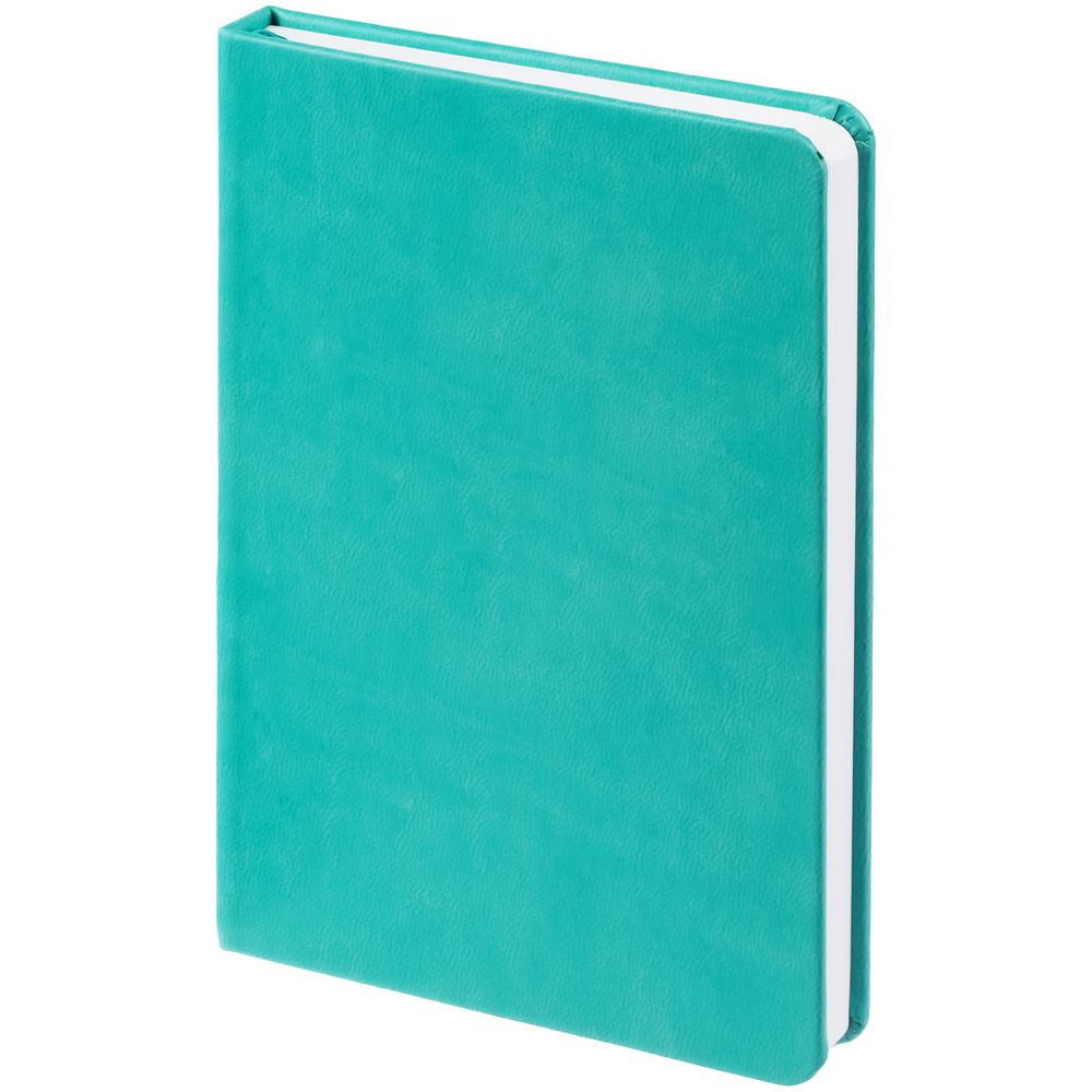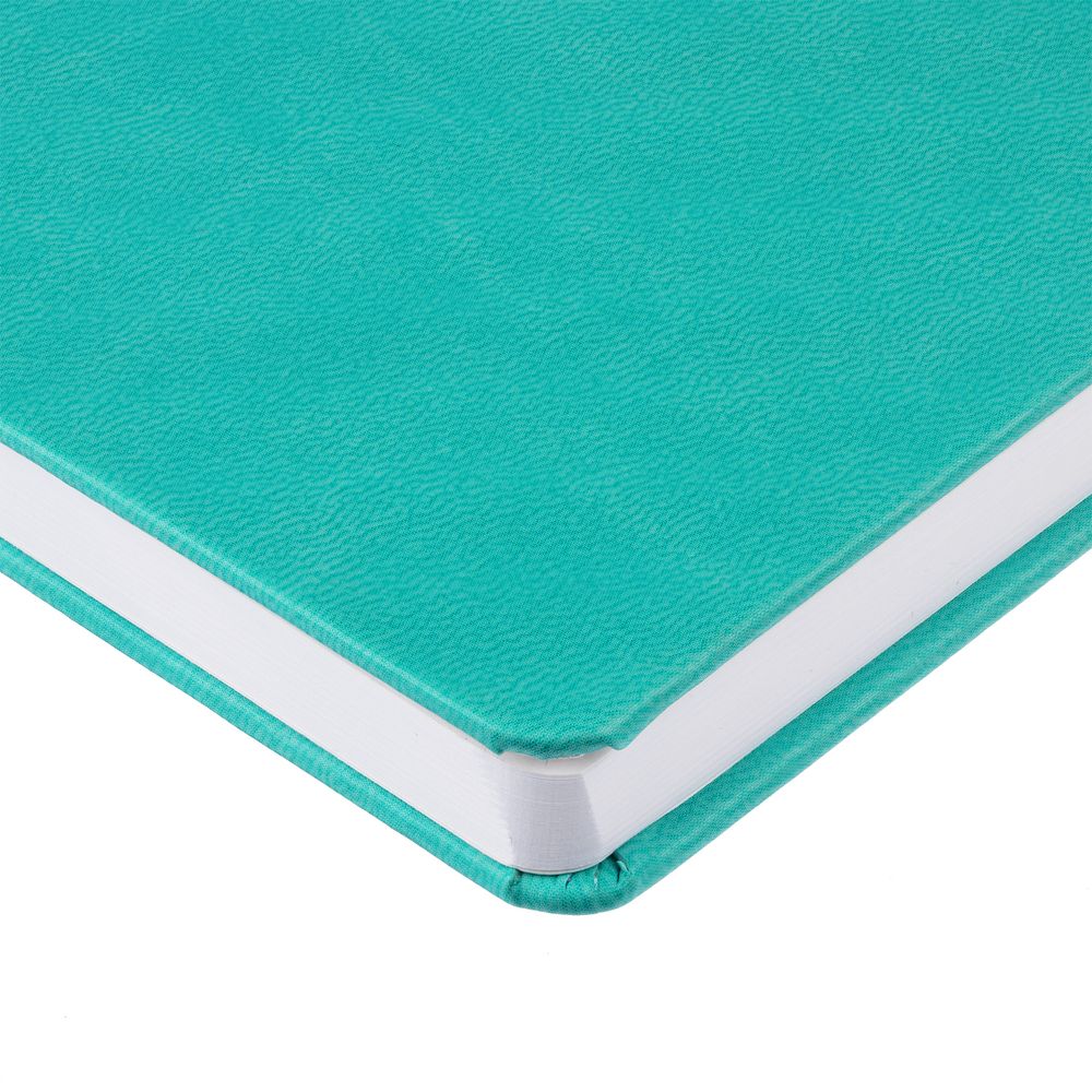 Ежедневник с твердой обложкой, выполнен из материала Latte, цвет морской волны II, дополнен ляссе в цвет обложки.
