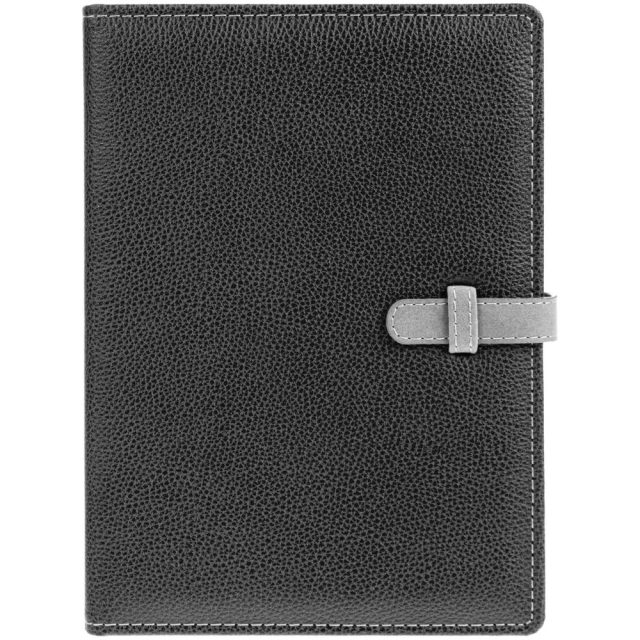Изящный ежедневник в съемной суперобложке из искусственной кожи с хлястиком.