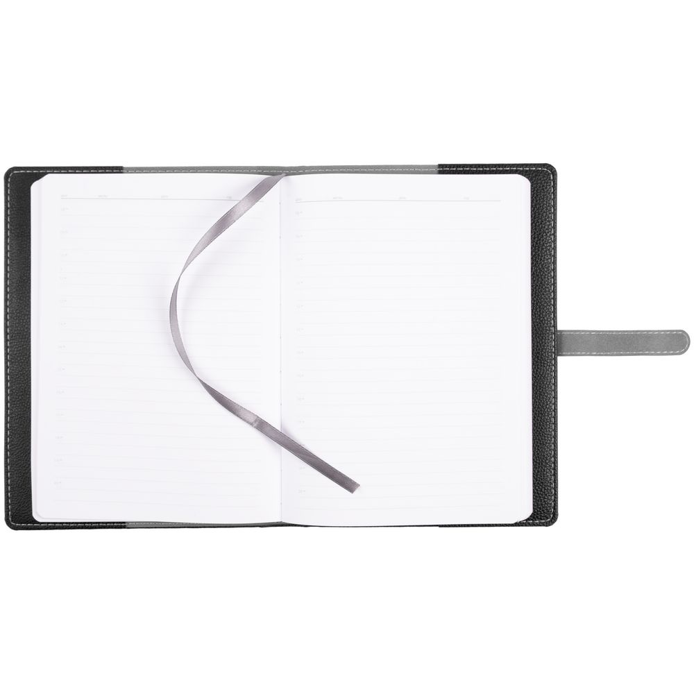Ежедневник в мягкой суперобложке, выполнен из материала La Fite, темно-серый ЕЕ, дополнен ляссе серого цвета.