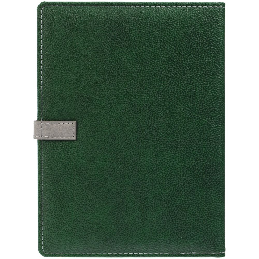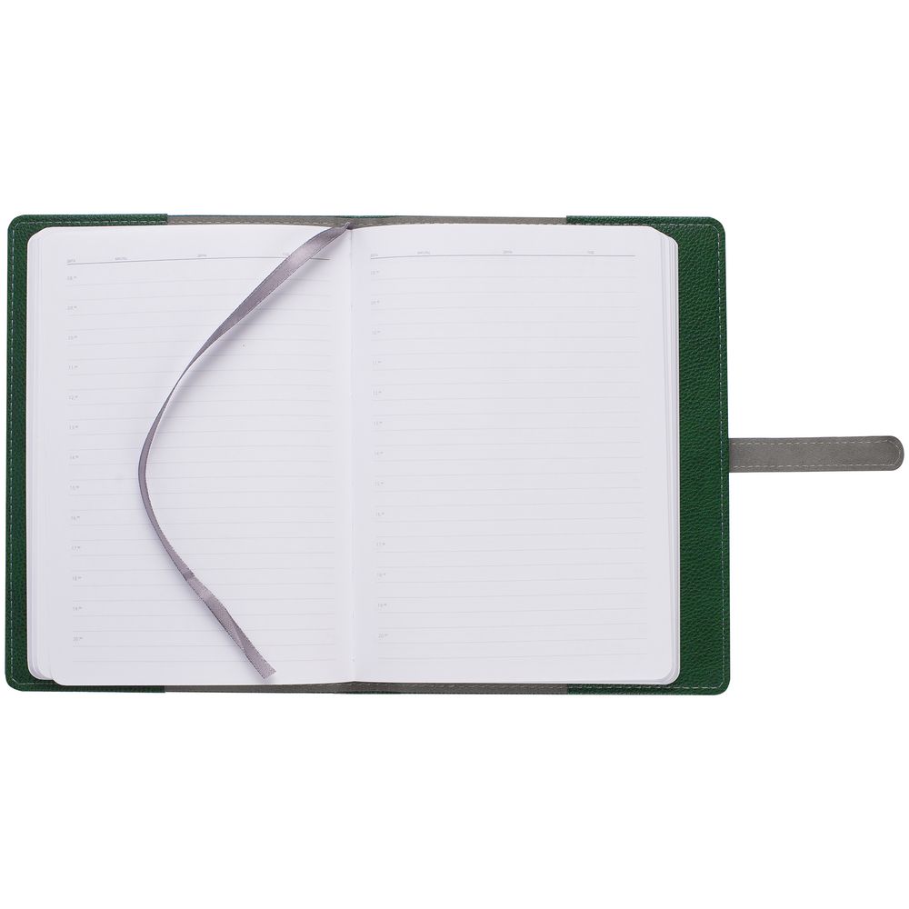 Ежедневник в мягкой суперобложке, выполнен из материала La Fite, зеленый FF, дополнен ляссе серого цвета.