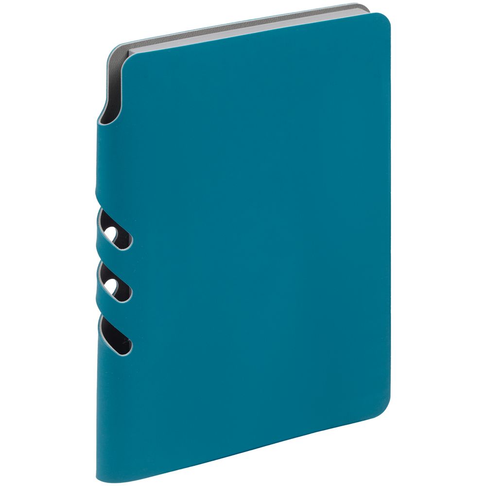 Ежедневник с гибкой обложкой выполнен из материала Soft Touch, цвет морской волны II и серого Latte (внутренняя часть обложки).