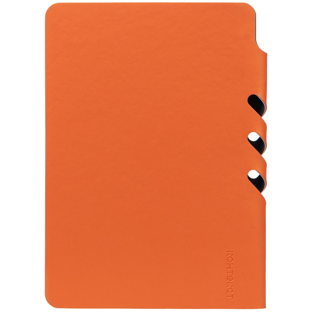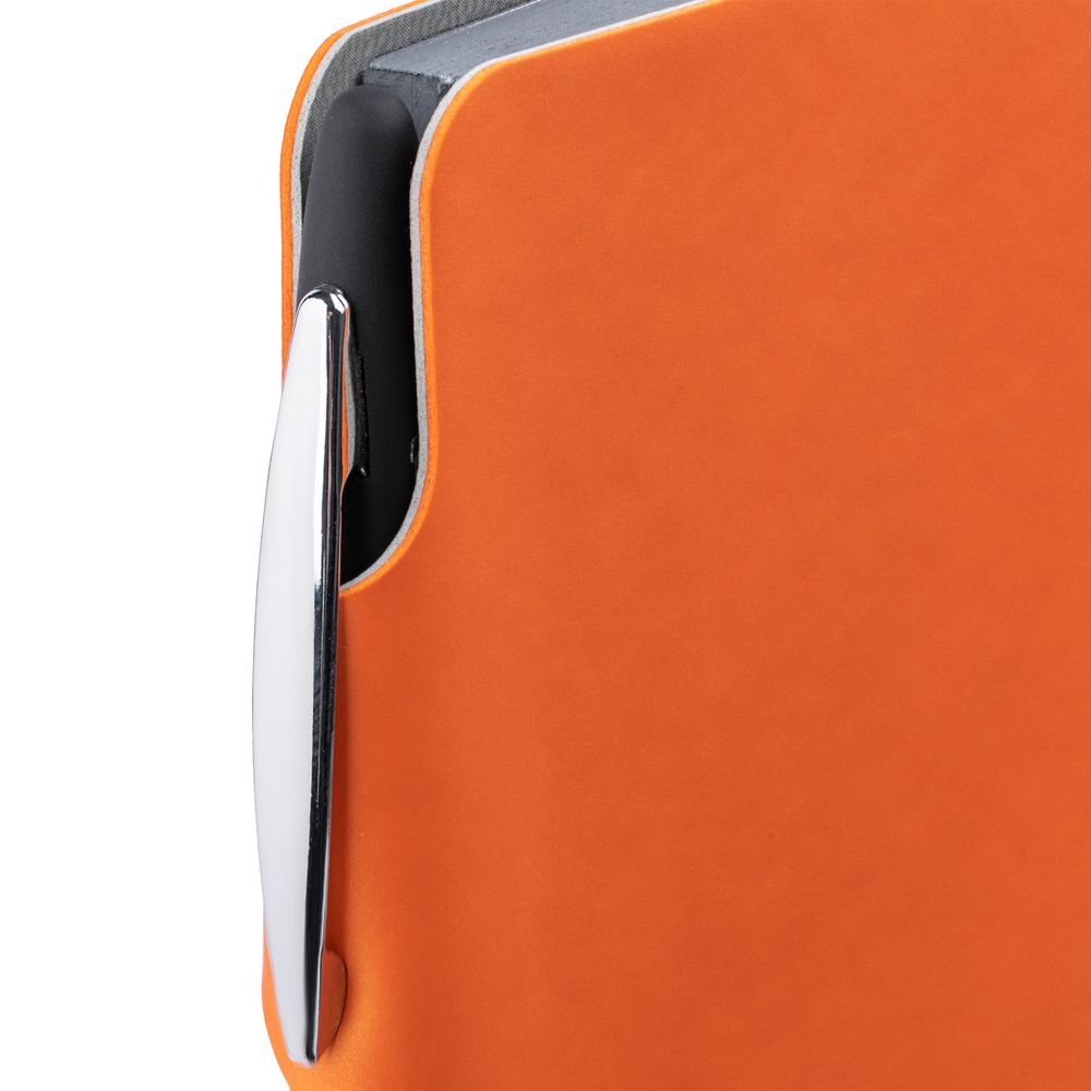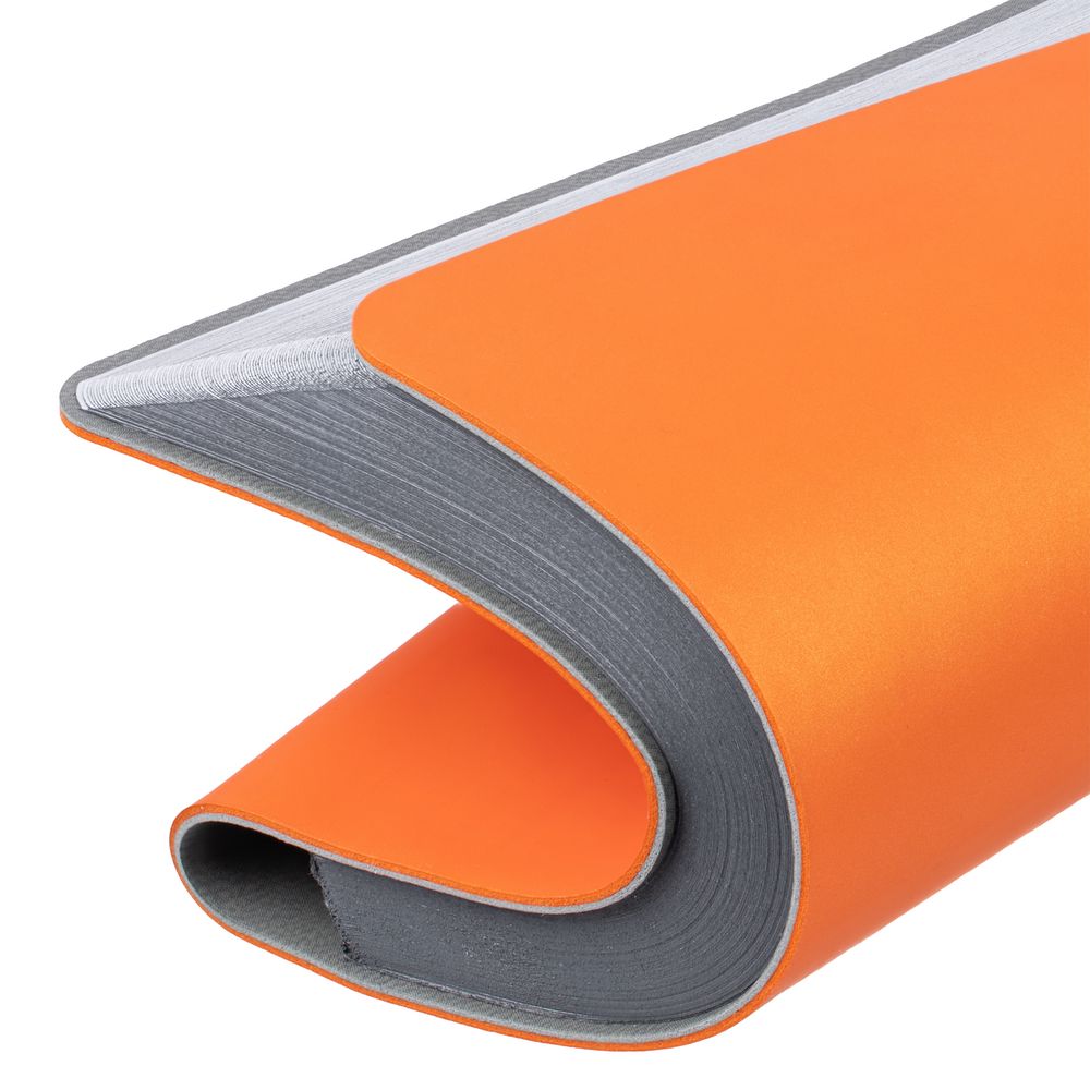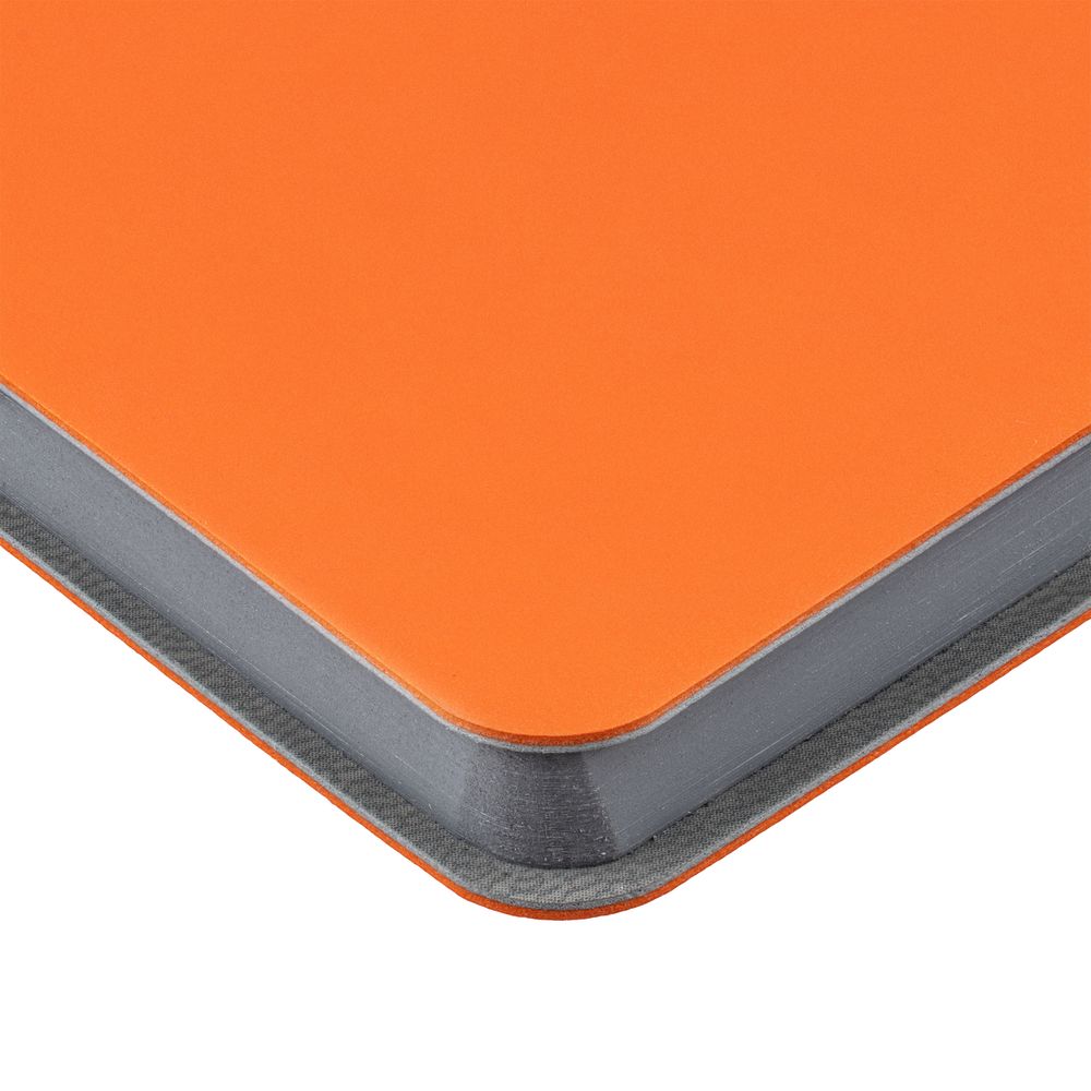 Ежедневник с гибкой обложкой выполнен из материала Soft Touch Pearl, оранжевый ОО и серого Latte (внутренняя часть обложки).