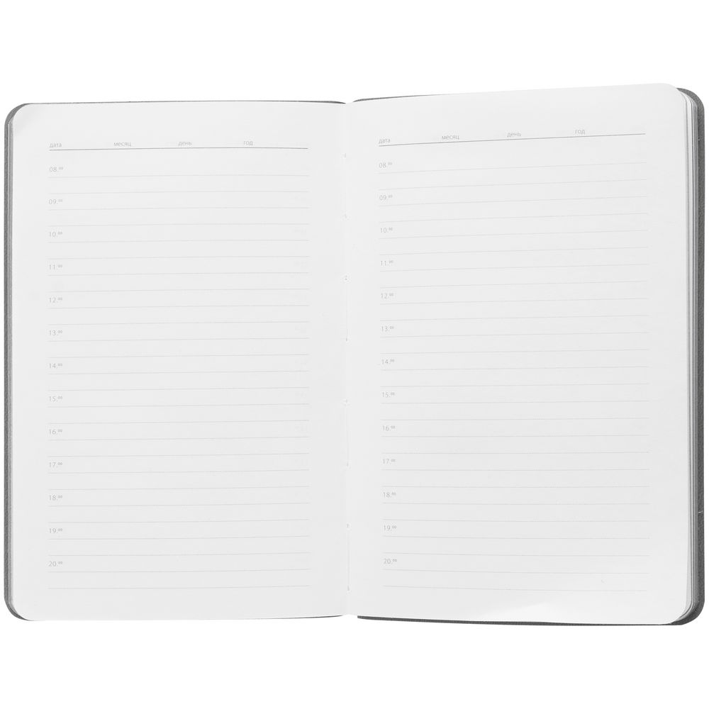 Ежедневник с гибкой обложкой выполнен из материала Soft Touch, светло-зеленый YY и серого Latte (внутренняя часть обложки).