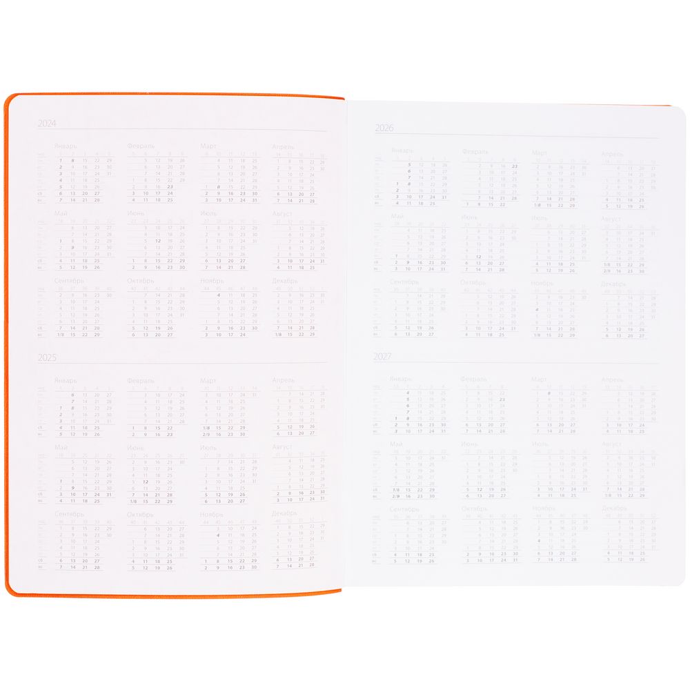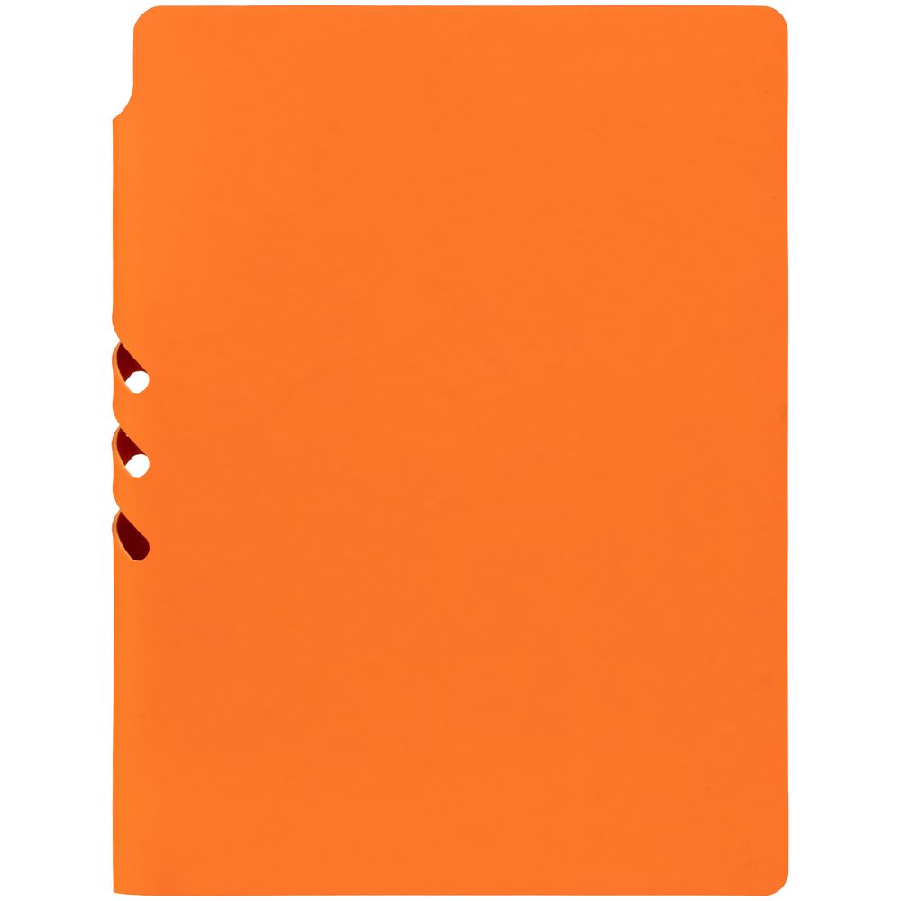 Гибкая обложка выполнена из материала Soft Touch, оранжевый OO и Latte, оранжевый OO (внутренняя часть обложки). Внутри корешка — специальное место для крепления ручки размером до 15х1 см.