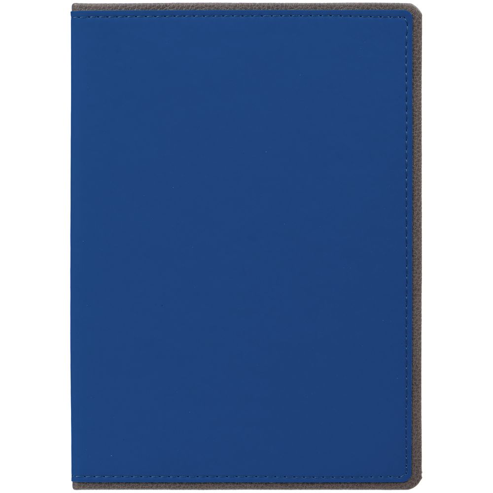 Ежедневник с твердой обложкой, выполнен из материалов Soft Touch Ultra, синий НН и La Fite, серый СС. Ляссе темно-серого цвета.