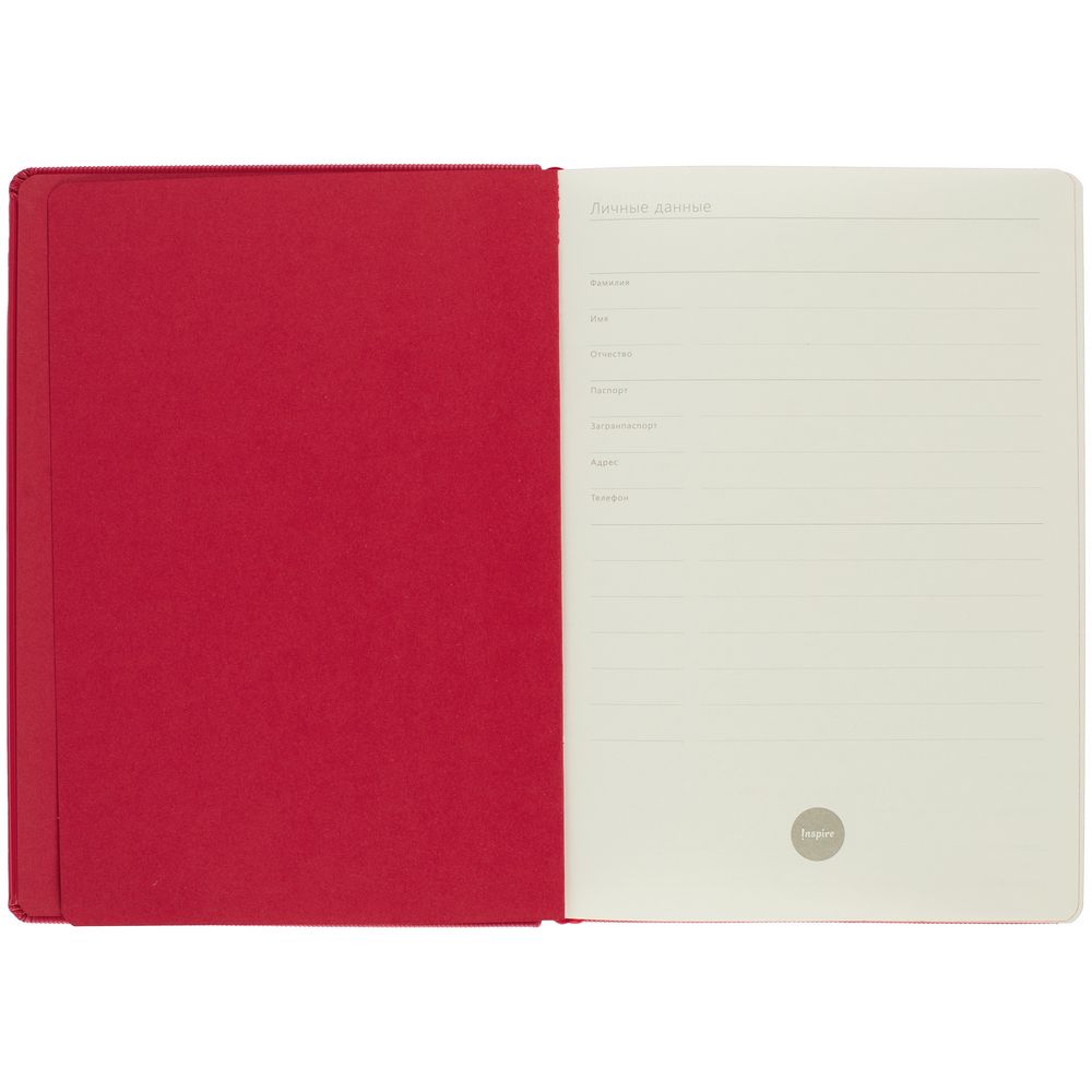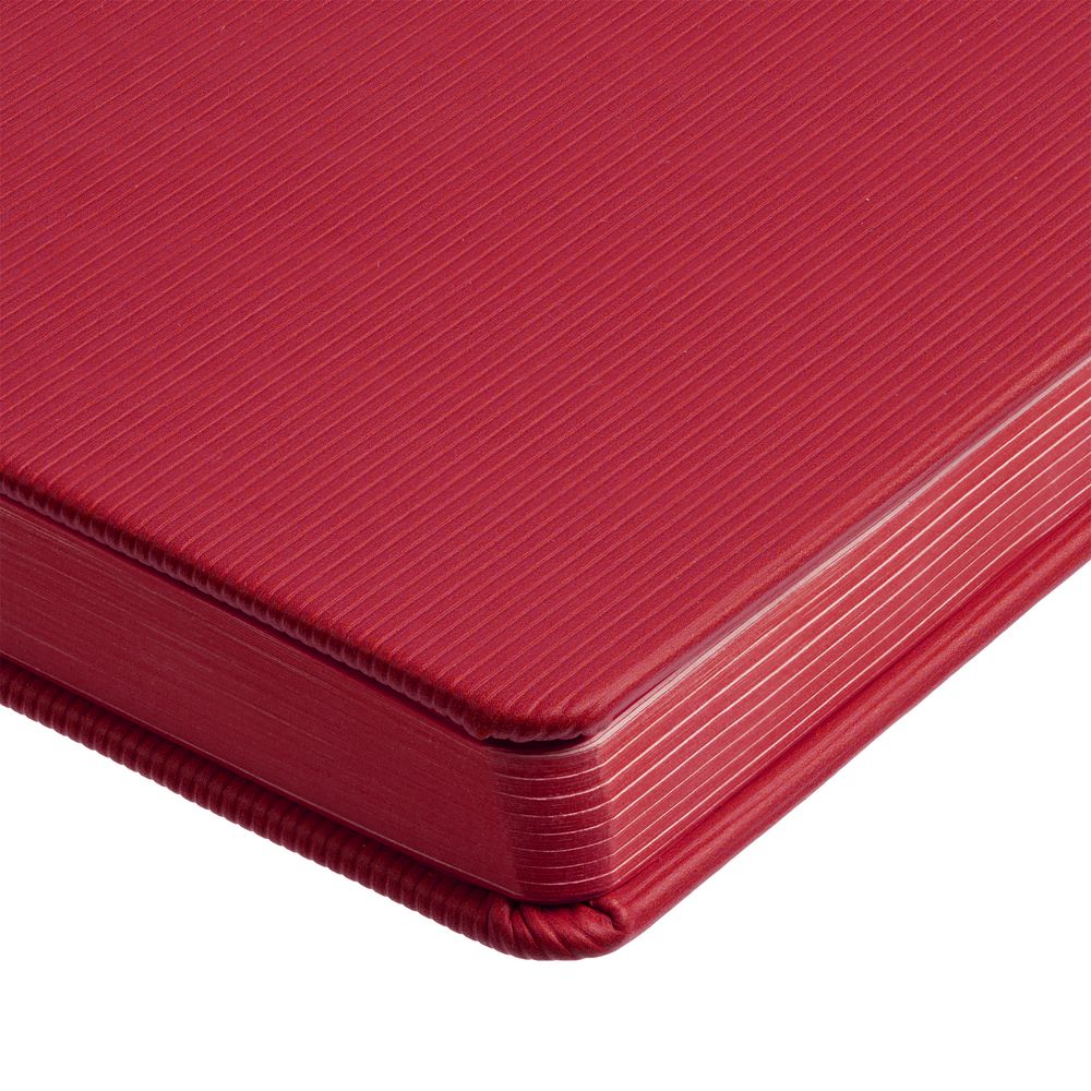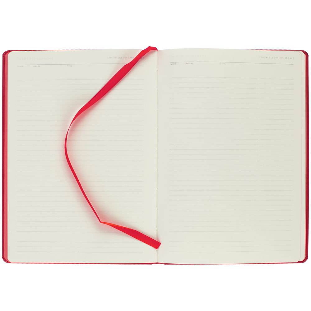 Ежедневник с твердой обложкой и тонированным обрезом. Выполнен из материала Rain, красный, дополнен ляссе в цвет обложки.