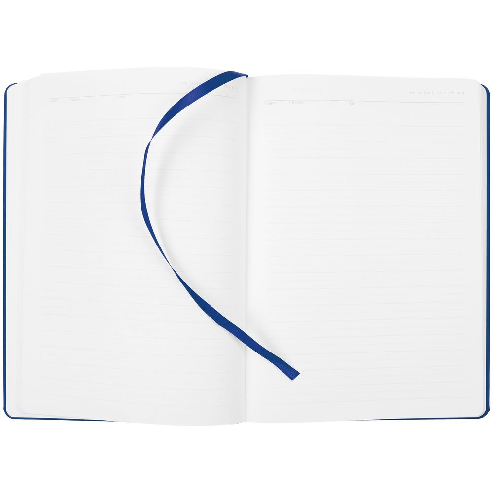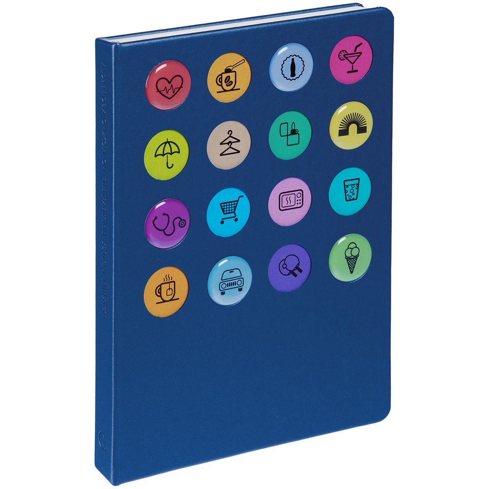 Обложка ежедневника из материала Soft Touch. На корешке обложки выполнено блинтовое тиснение, обложка дополнена вырубкой с печатью на бумаге и полимерными наклейками под смолой.