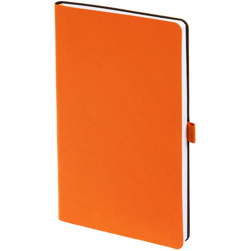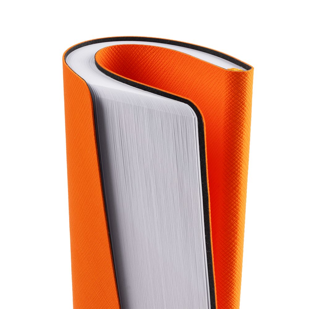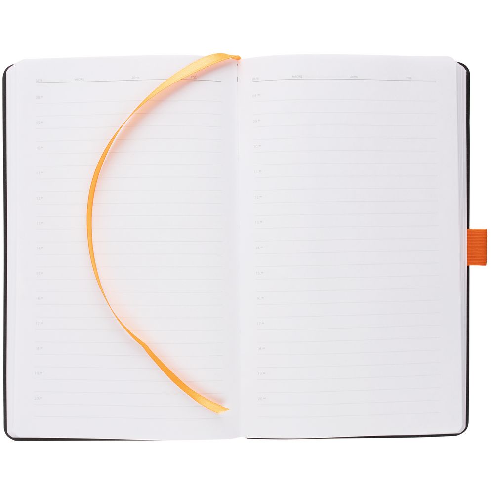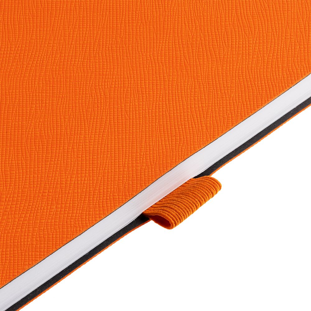 Ежедневник с гибкой обложкой, выполнен из материала Nice Touch, оранжевый ОО, дополнен цветными ляссе и петлей-резинкой для ручки.