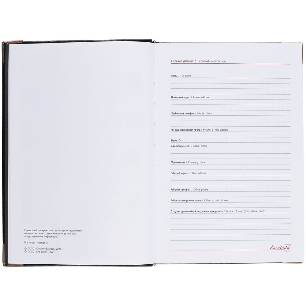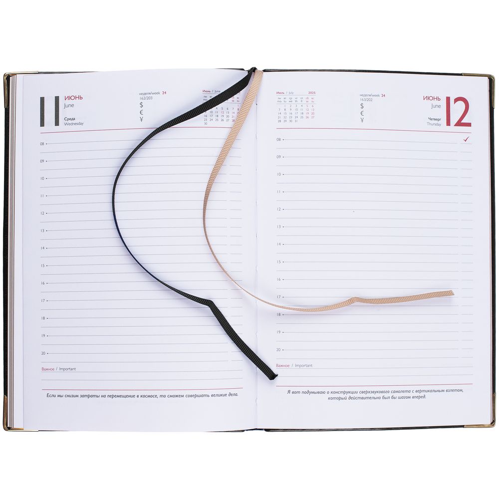 Ежедневник с интегральным переплетом из искусственной кожи Sarif, дополнен капталом и двойным ляссе.