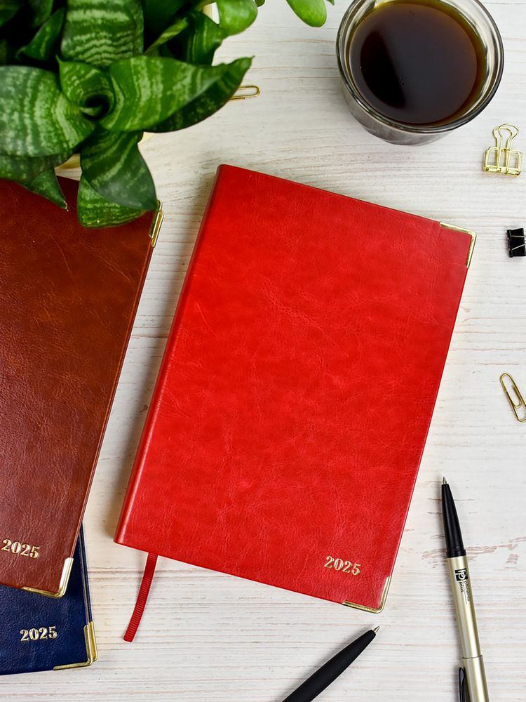 Ежедневник с интегральным переплетом из искусственной кожи Sarif, дополнен капталом и двойным ляссе.