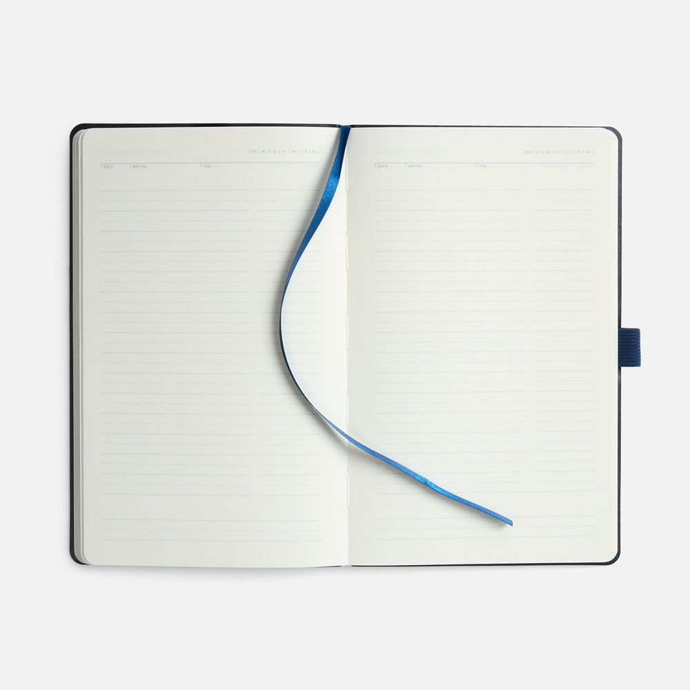 Ежедневник с гибкой обложкой, выполнен из материала Espresso, дополнен цветными ляссе и петлей-резинкой для ручки.