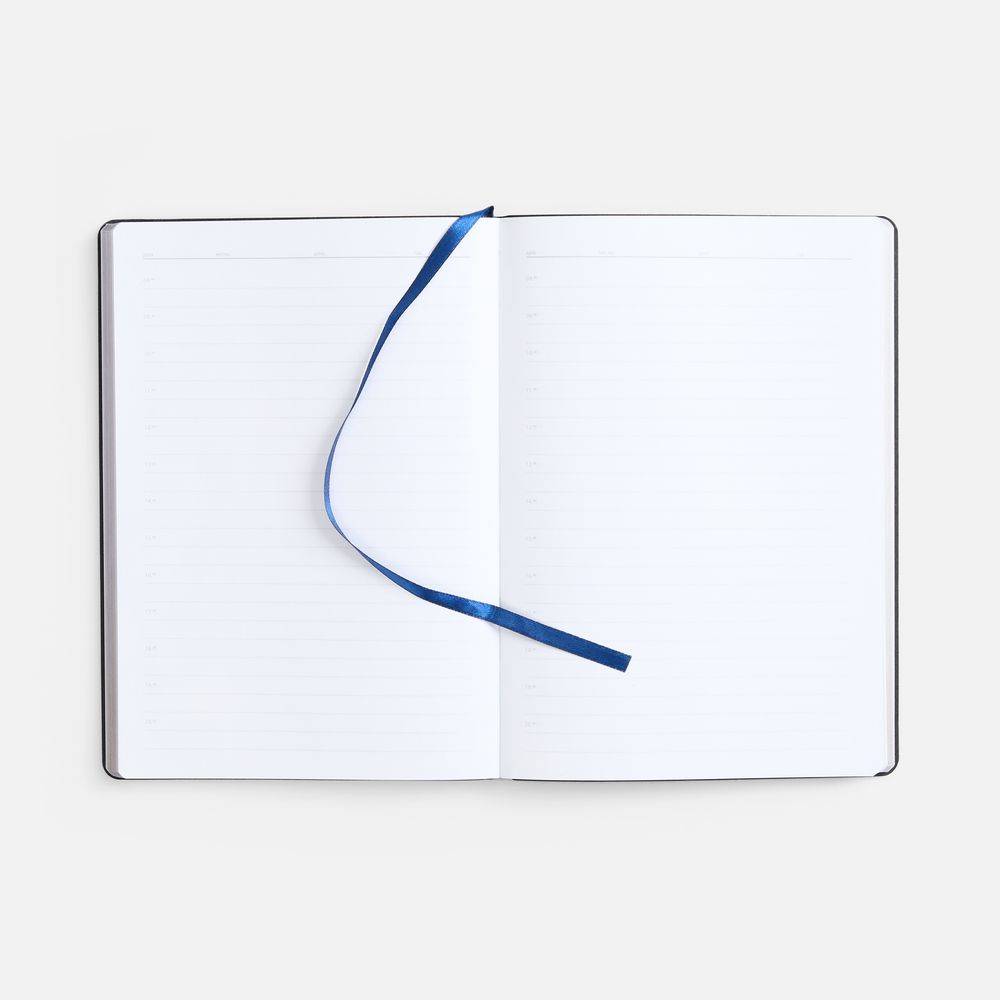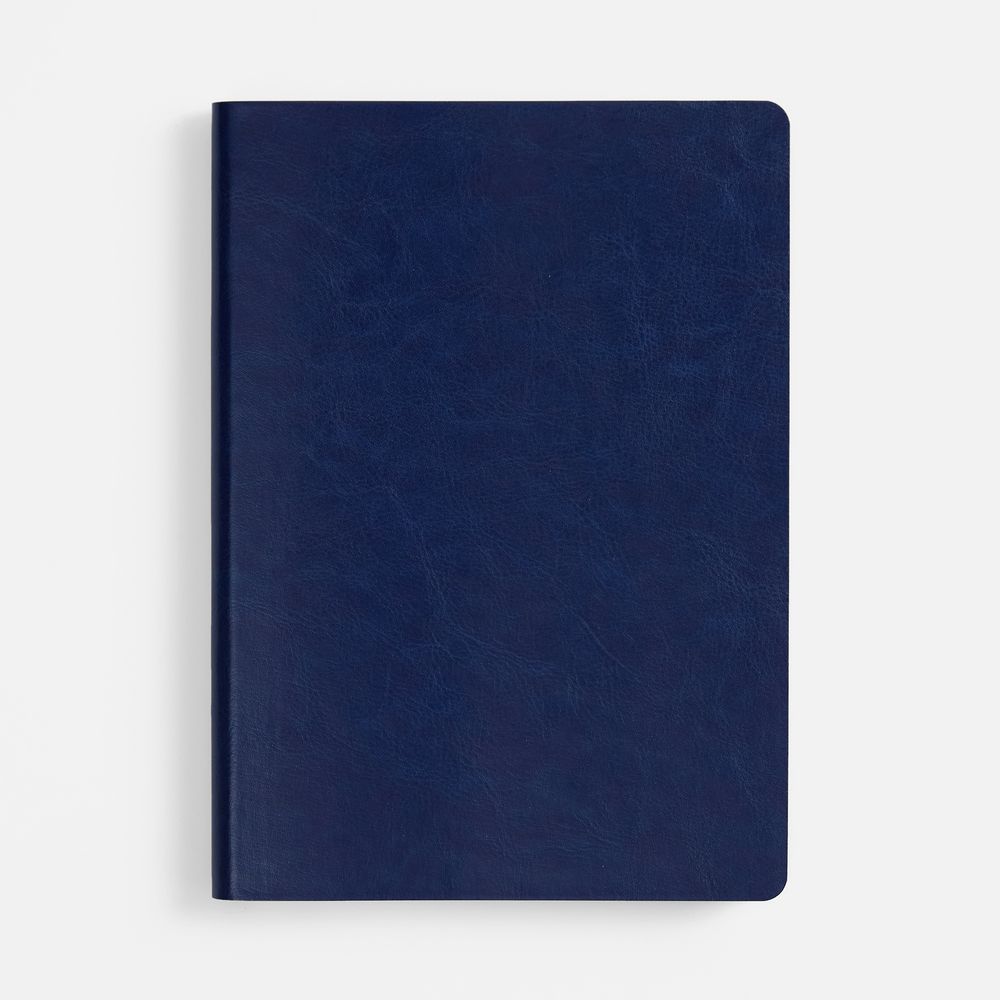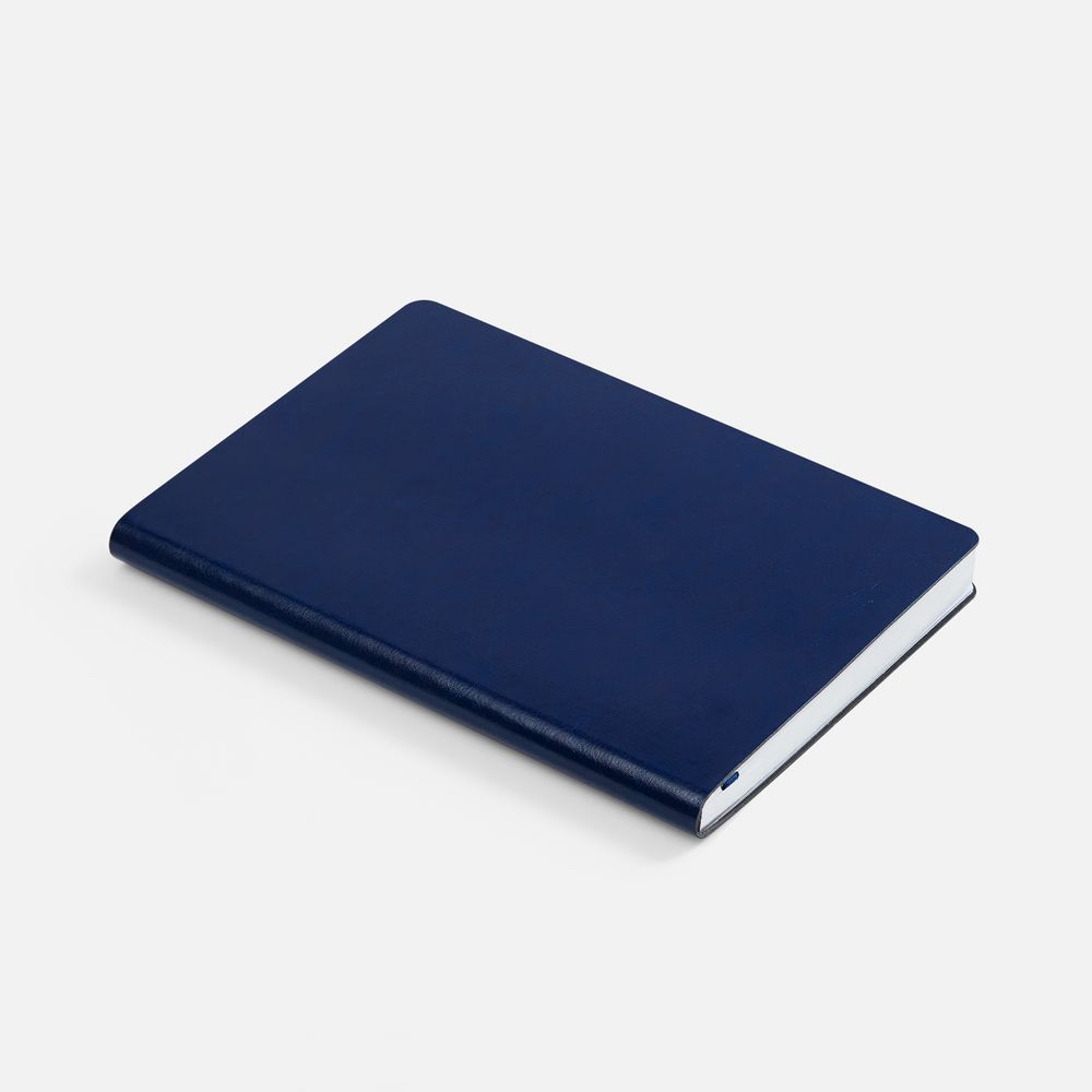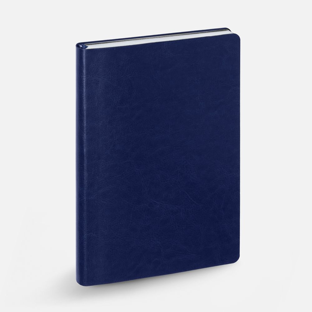 Ежедневник с гибкой обложкой, выполнен из материала Nebraska, синий HH, дополнен ляссе темно-синего цвета.