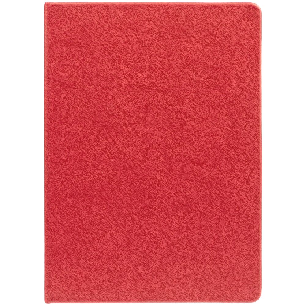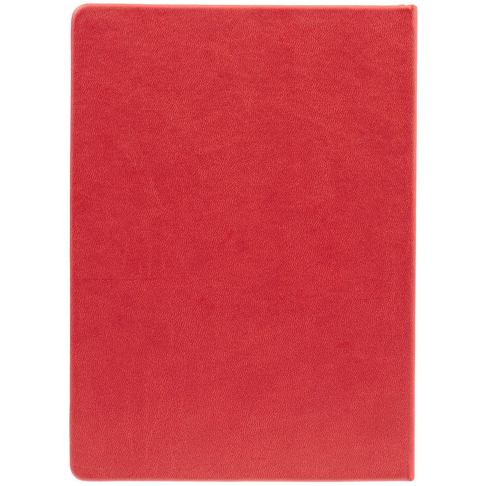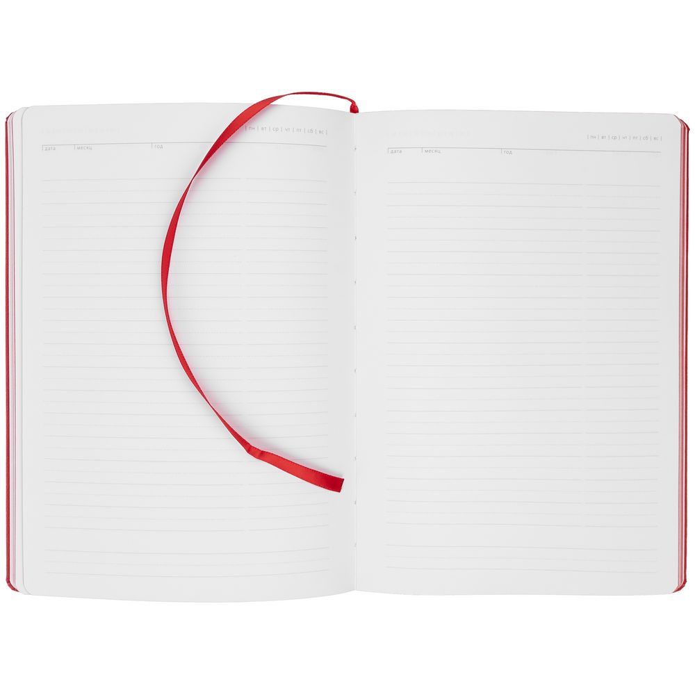 Ежедневник с твердой обложкой. Выполнен из материала Latte, красный, дополнен ляссе в цвет обложки.