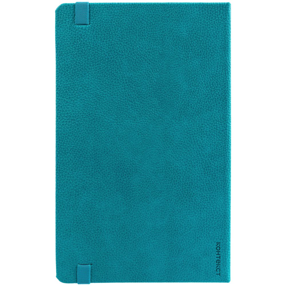 Ежедневник с твердой обложкой, выполнен из материала LaFite, цвет морской волны II, дополнен резинкой с металлическим прямоугольным шильдом и ляссе в цвет обложки.
