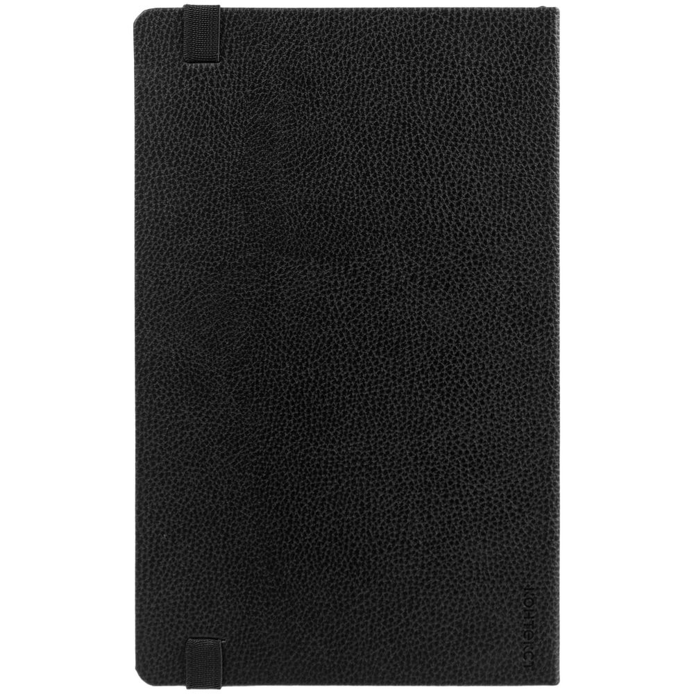 Ежедневник с твердой обложкой, выполнен из материала LaFite, черный АА, дополнен резинкой с металлическим круглым шильдом и ляссе в цвет обложки.