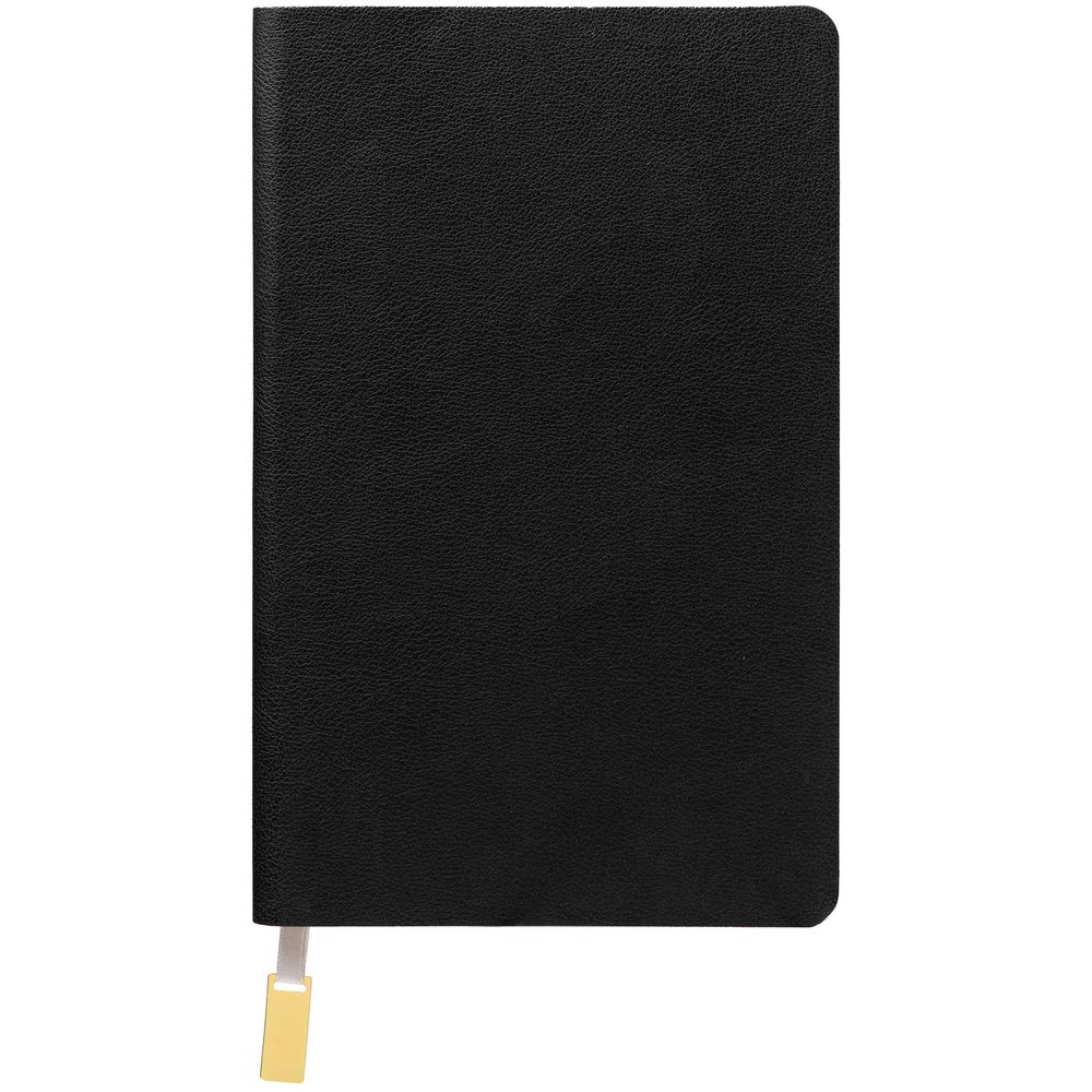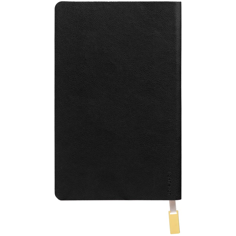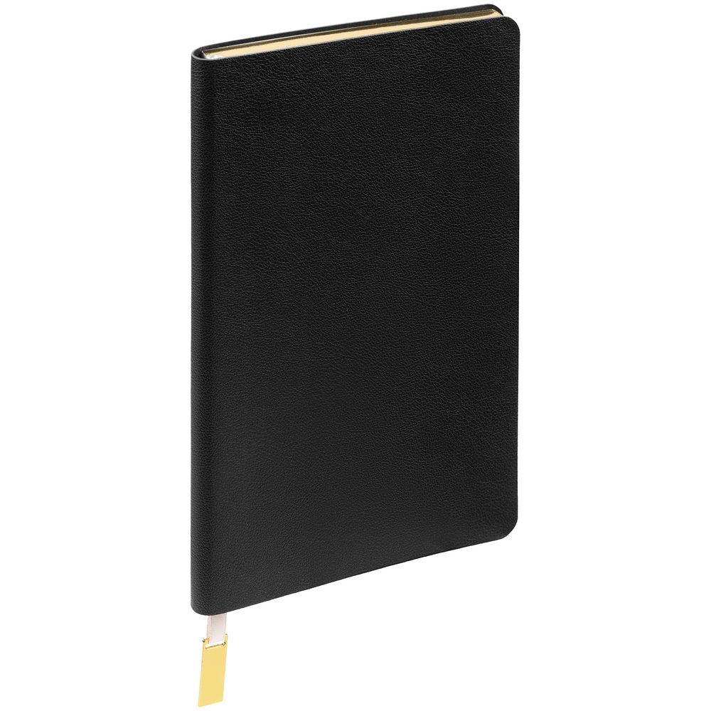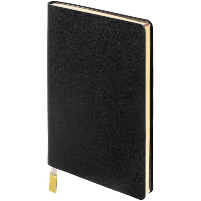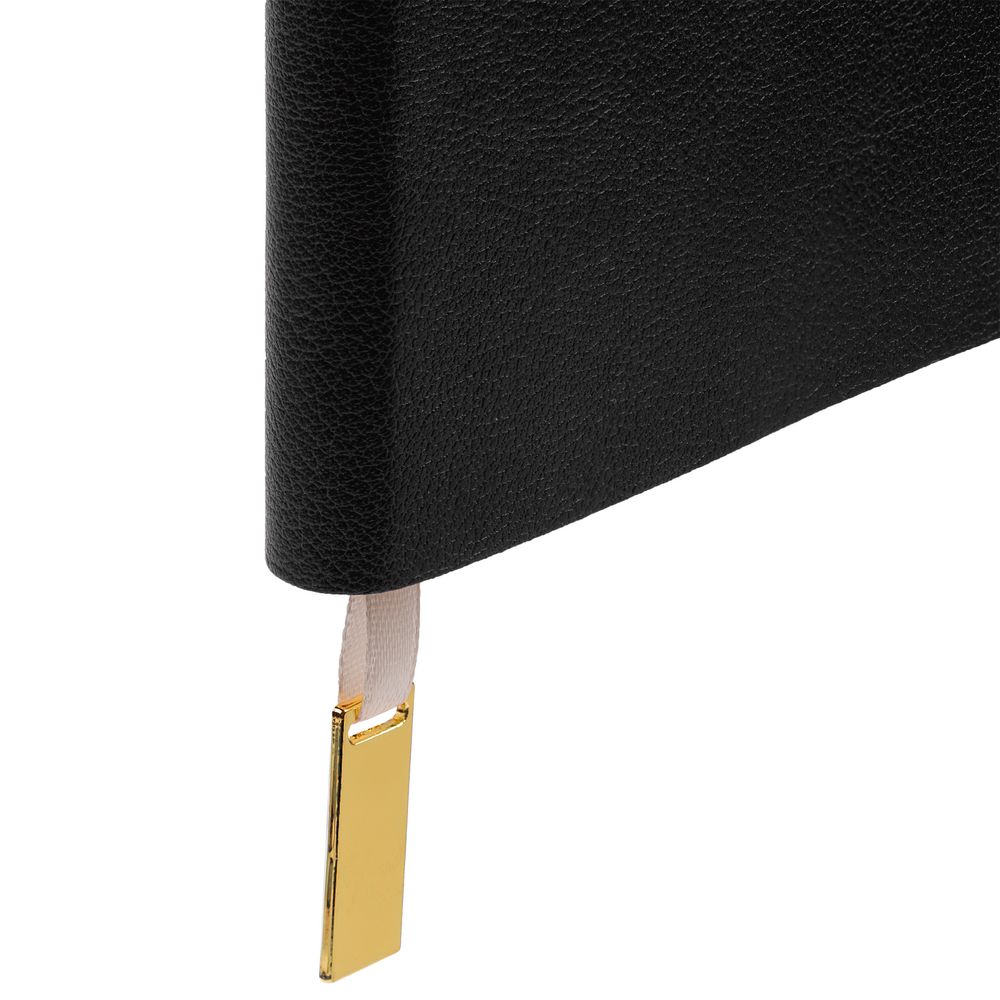 Ежедневник с гибкой обложкой, выполнен из материала Petrus, черный АА, дополнен ляссе с металлическим золотистым шильдиком.