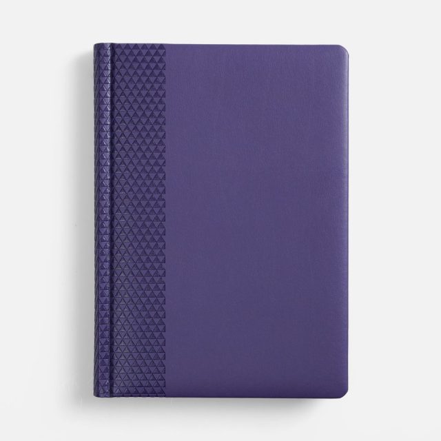 Ежедневник с твердой обложкой, выполнен из материала Waltz, фиолетовый UU, дополнен ляссе в цвет материала.