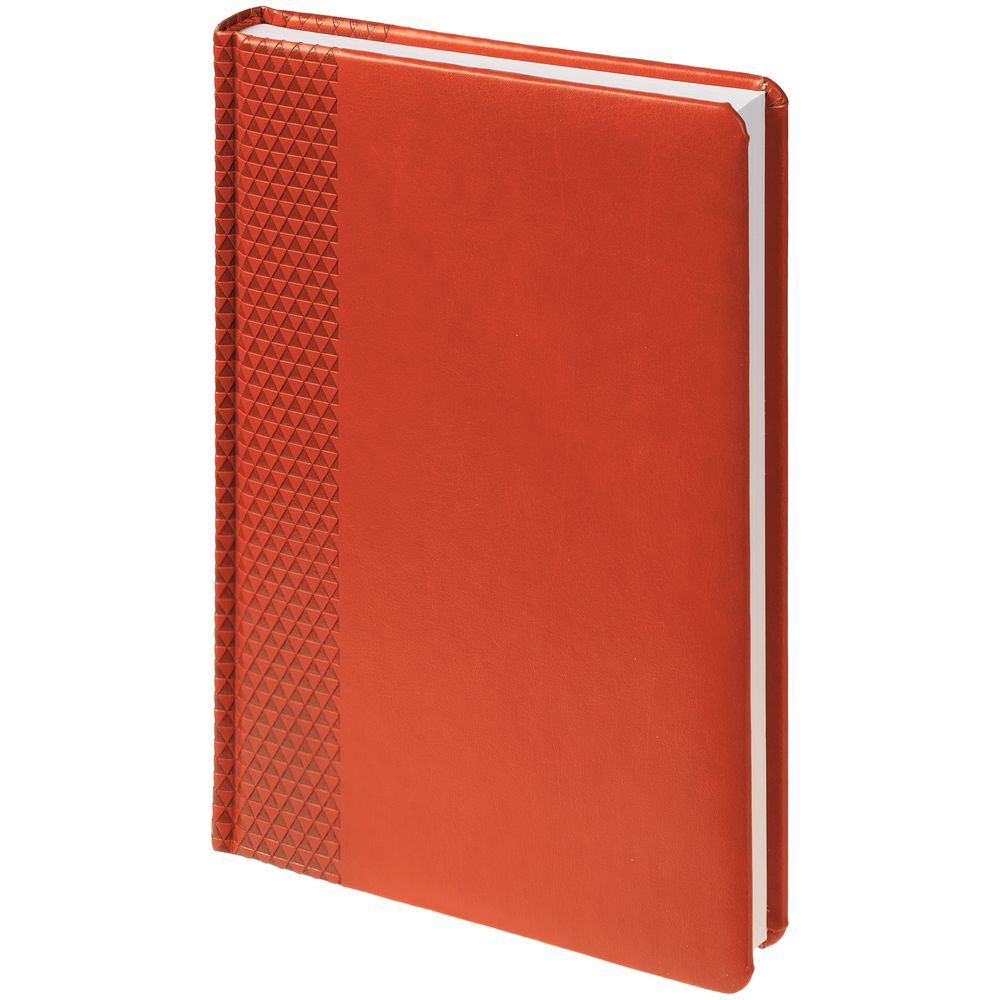 Ежедневник с твердой обложкой, выполнен из материала Waltz, оранжевый ОО, дополнен ляссе в цвет материала.