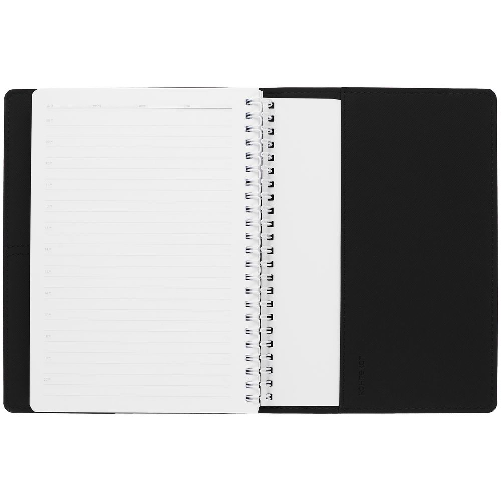 Ежедневник с блоком на пружине в твердой обложке, выполнен из материалов Nice Touch, черный АА и Soft Touch желтый.