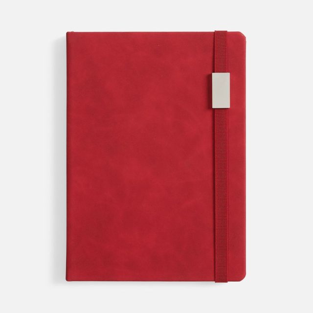 Ежедневник с твердой обложкой, выполнен из материала Nubuck Touch, красный PP, дополнен ляссе в цвет обложки.