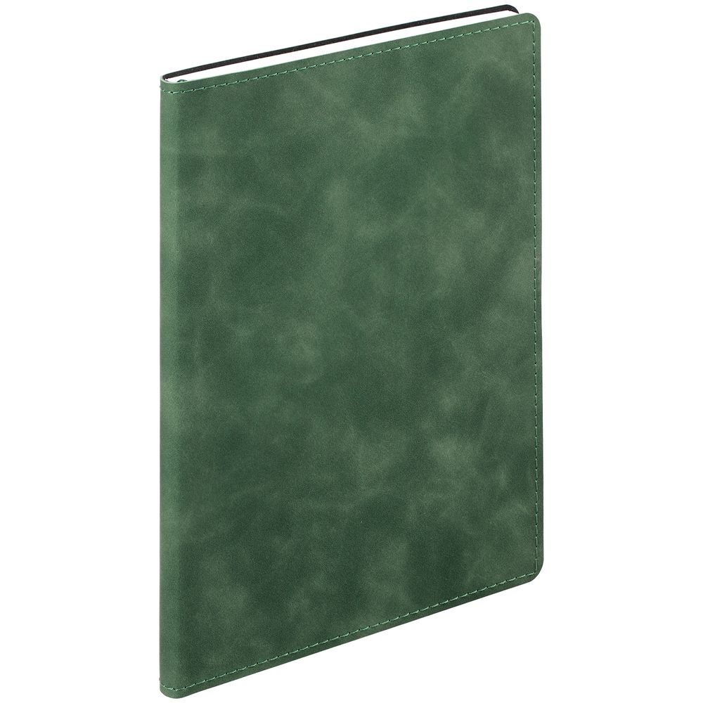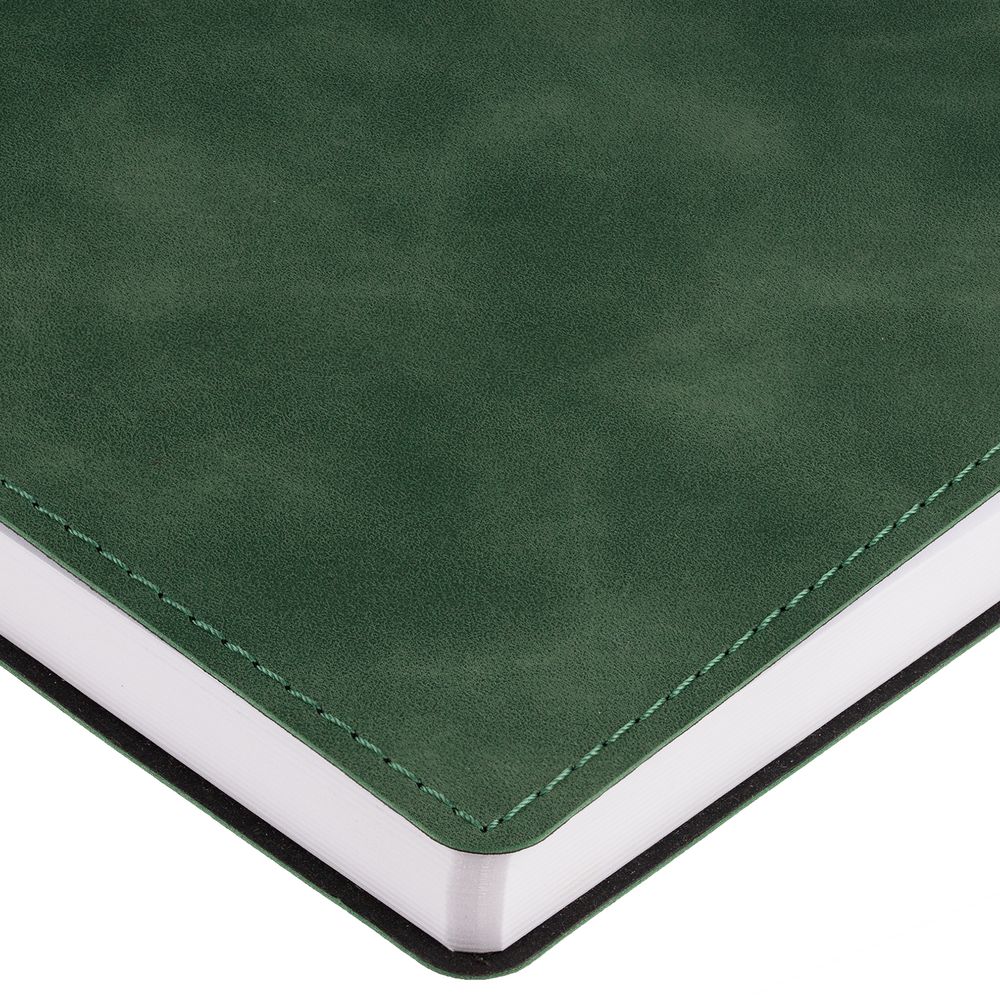 Ежедневник с гибкой обложкой, выполнен из материала Nubuck Touch, зеленый FF, дополнен ляссе темно-зеленого цвета.