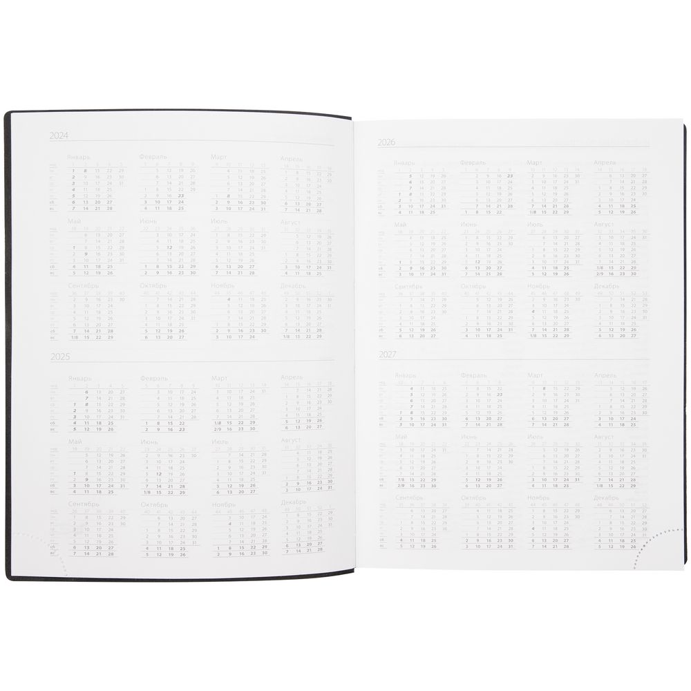 Ежедневник с гибкой обложкой, выполнен из материала Latte, темно-синий XX, дополнен резинкой шириной 1 см, капталом и ляссе синего цвета.