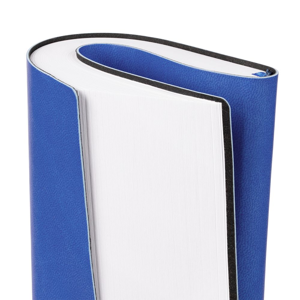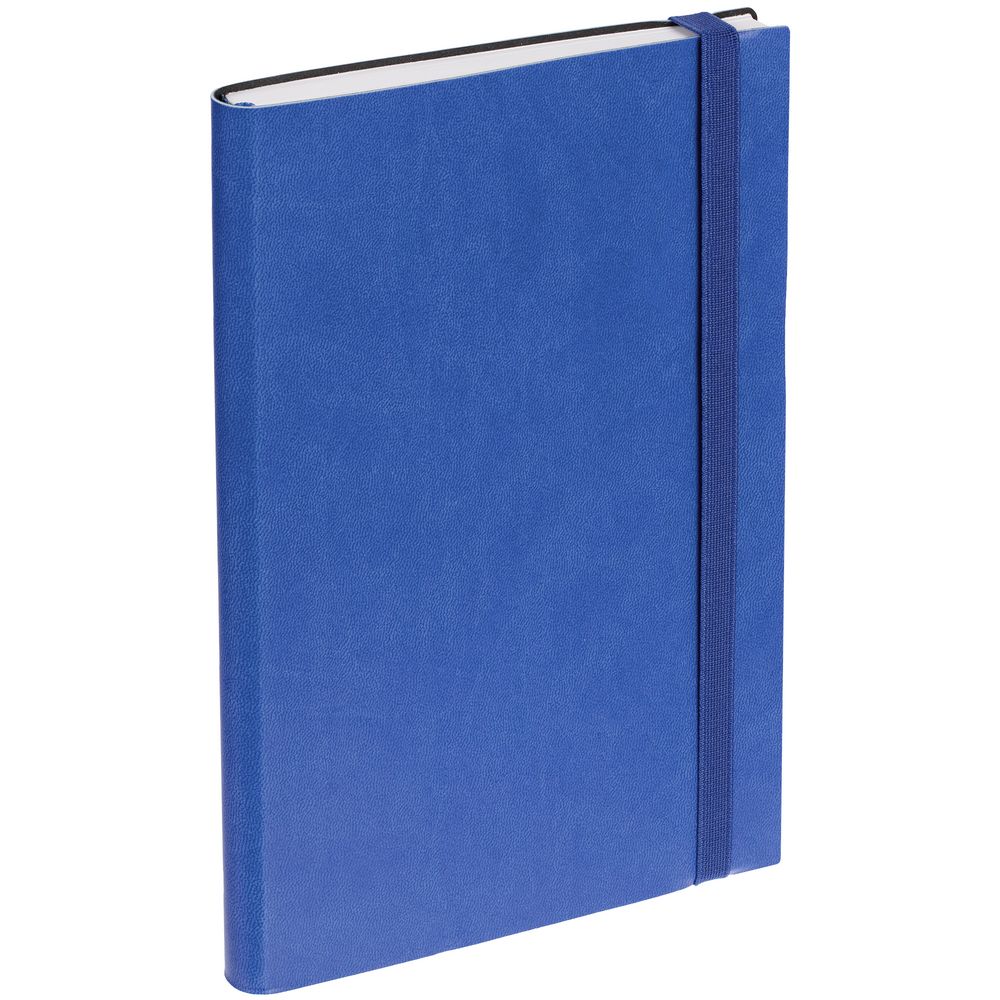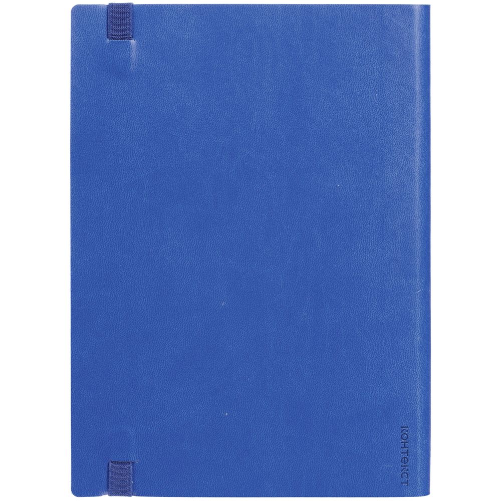 Ежедневник с гибкой обложкой, выполнен из материала Latte, синий НН, дополнен резинкой шириной 1 см, капталом и ляссе синего цвета.