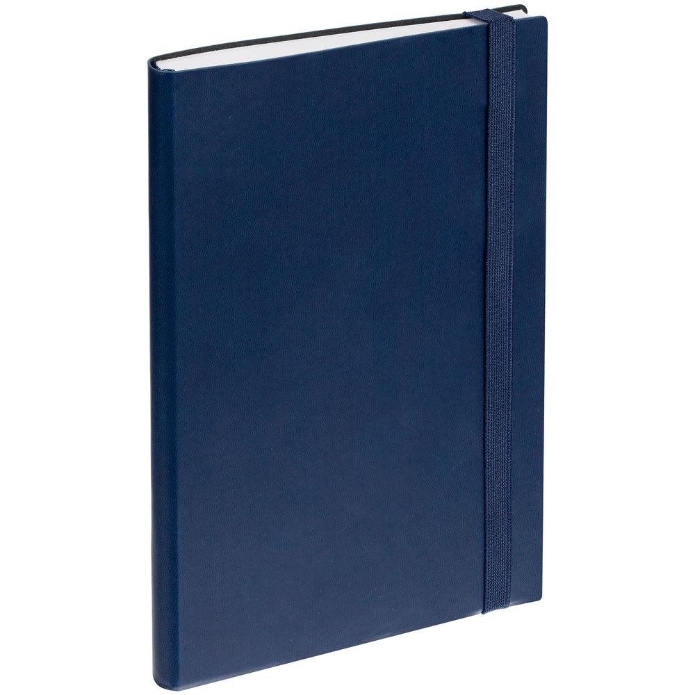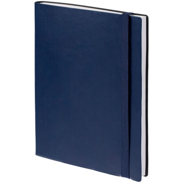 Ежедневник с гибкой обложкой, выполнен из материала Latte, темно-синий НН, дополнен резинкой шириной 1 см, капталом и ляссе темно-синего цвета.
