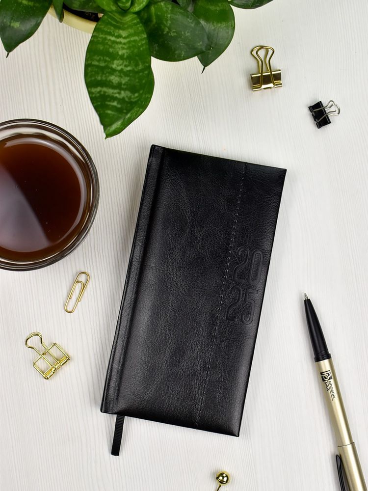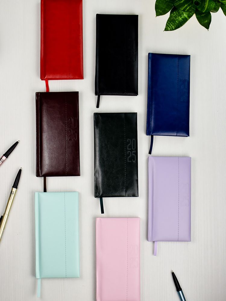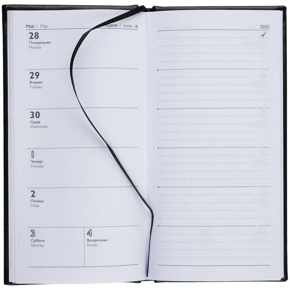 Еженедельник с твердой обложкой с поролоном из искусственной кожи Sarif, дополнен декоративной строчкой, капталом и ляссе в цвет ежедневника.