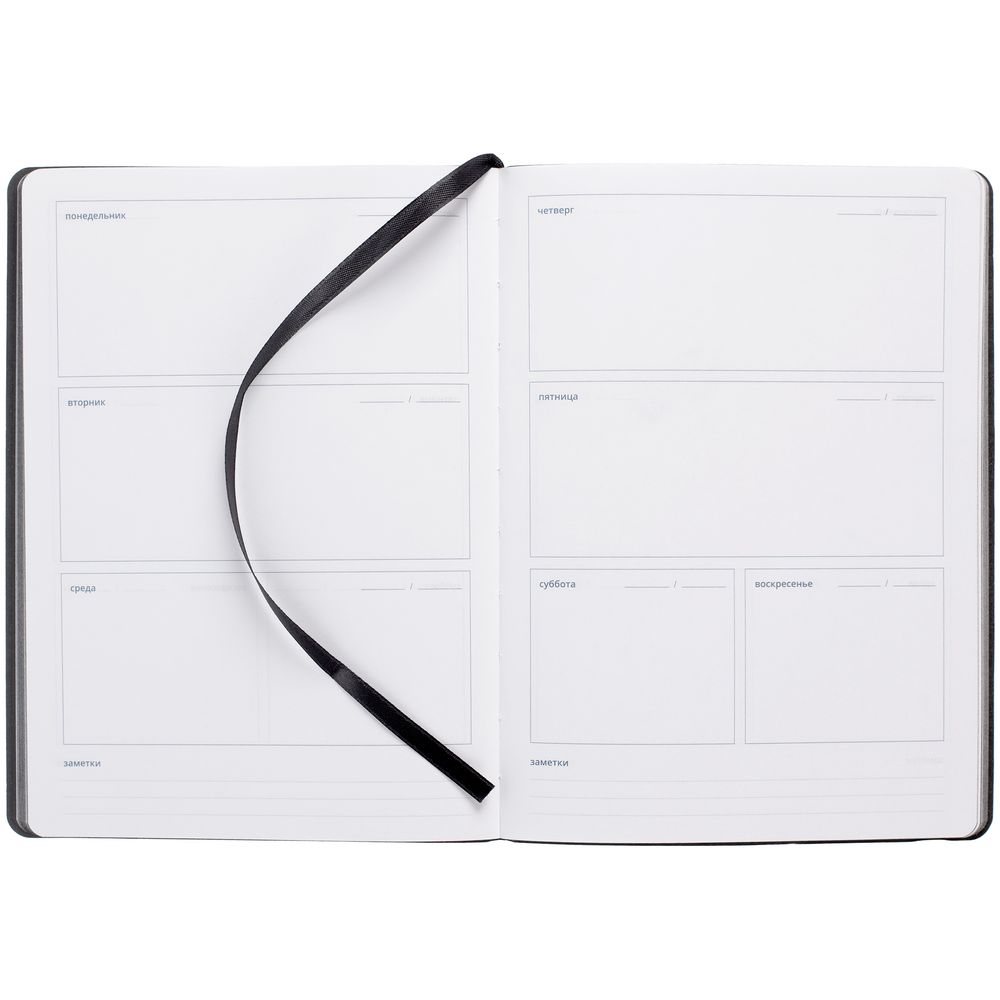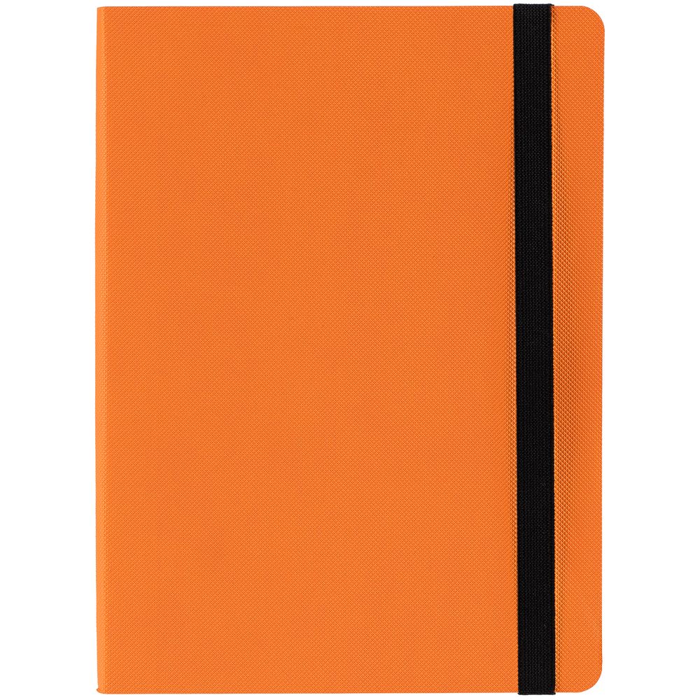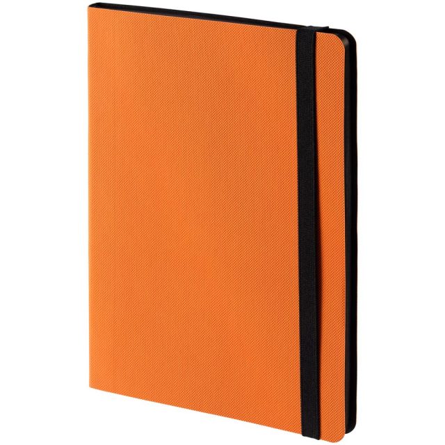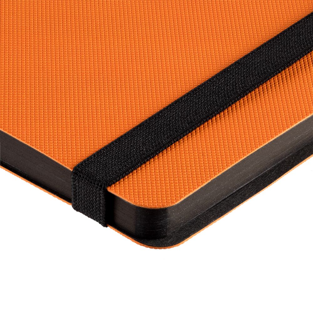 Еженедельник в гибкой обложке из материала Canyon, оранжевый ОО, дополнен резинкой и ляссе черного цвета.