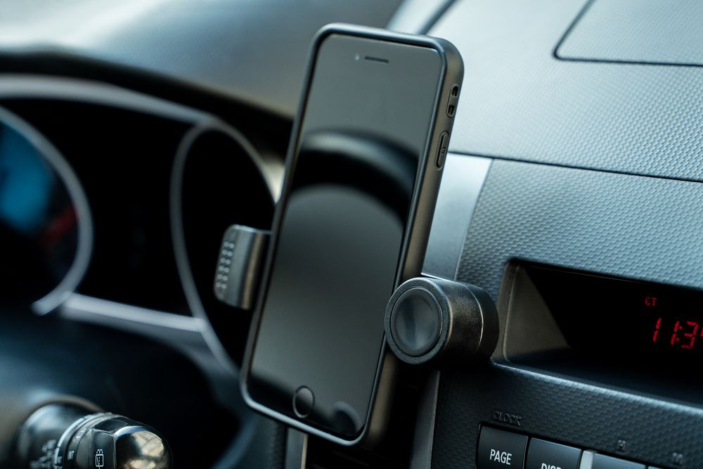 Компактный раздвижной держатель для мобильных устройств с креплением в воздуховод.