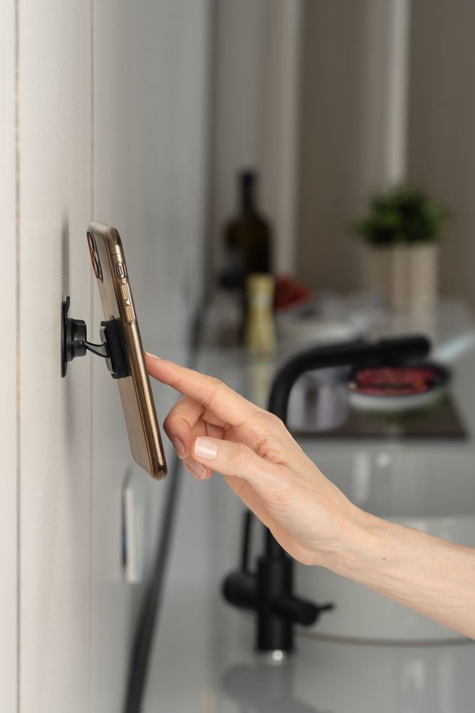 Головка держателя может менять угол наклона и вращаться на 360 градусов.В комплекте две металлические пластины, которые можно приклеить с помощью двухстороннего скотча (в комплекте) или вложить под заднюю крышку или чехол, чтобы не портить внешний вид телефона.