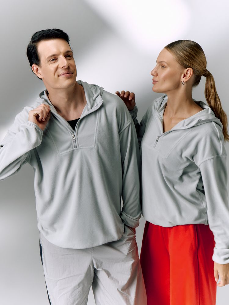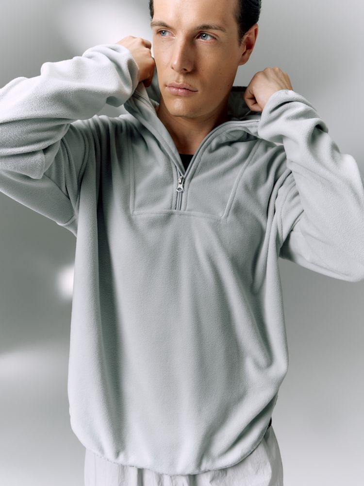 Флисовый анорак унисекс с капюшоном.